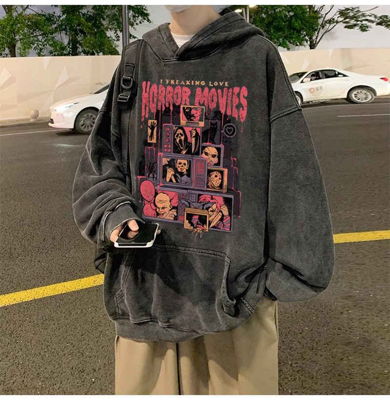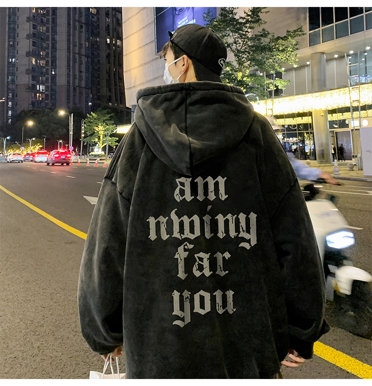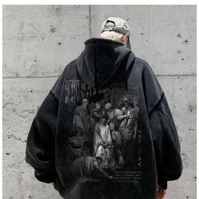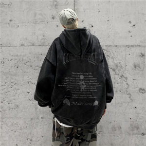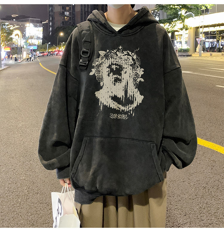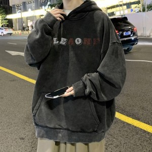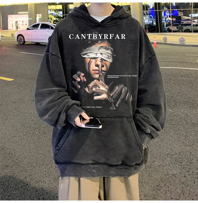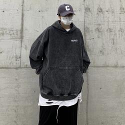 무거운 씻은 퓨어 코튼 올드 후드 스웨트 셔츠 남성 인스 타 그램 인기 브랜드 미국 스타일 레트로 남성과 여성을위한 유럽과 미국 코트스토어 가기