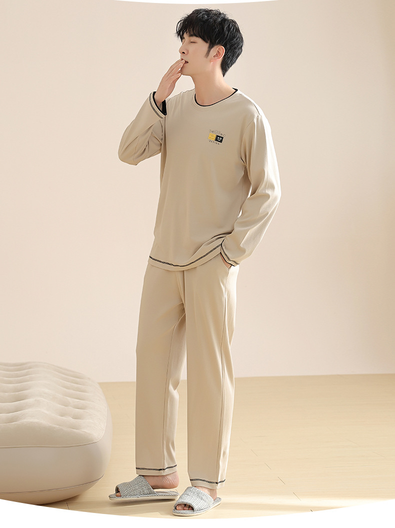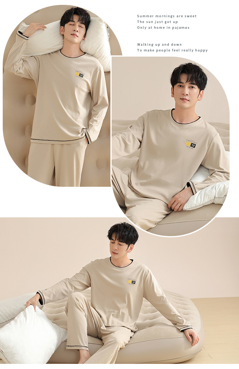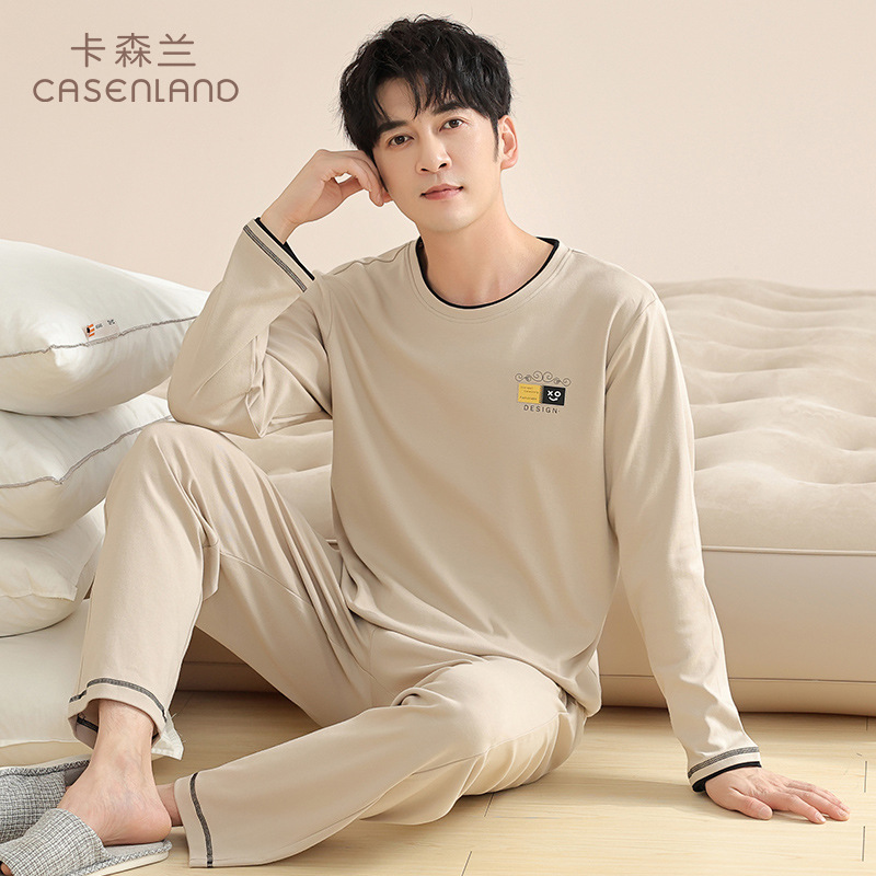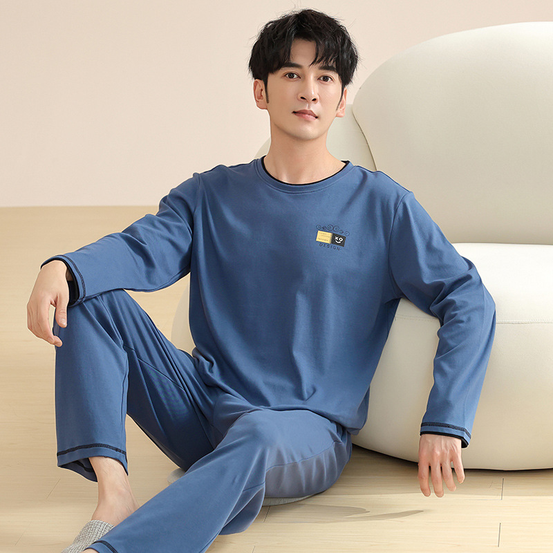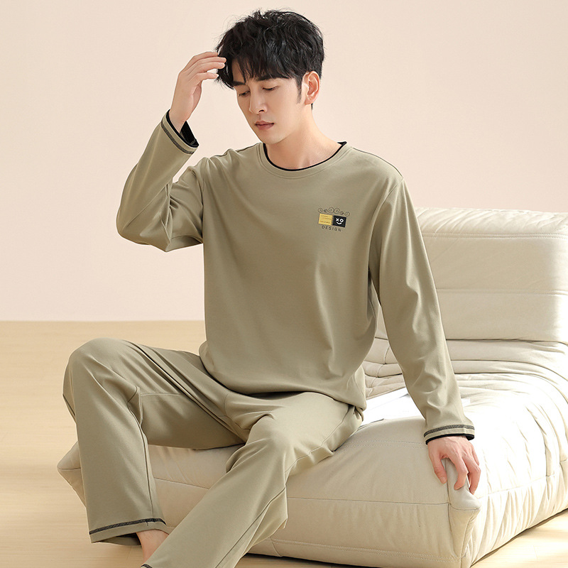 새로운 스타일 잠옷 남자의 가을 순면 긴 소매 세트 청소년 봄과 가을 순면 플러스 사이즈 아웃웨어 남자의 가정 의류스토어 가기