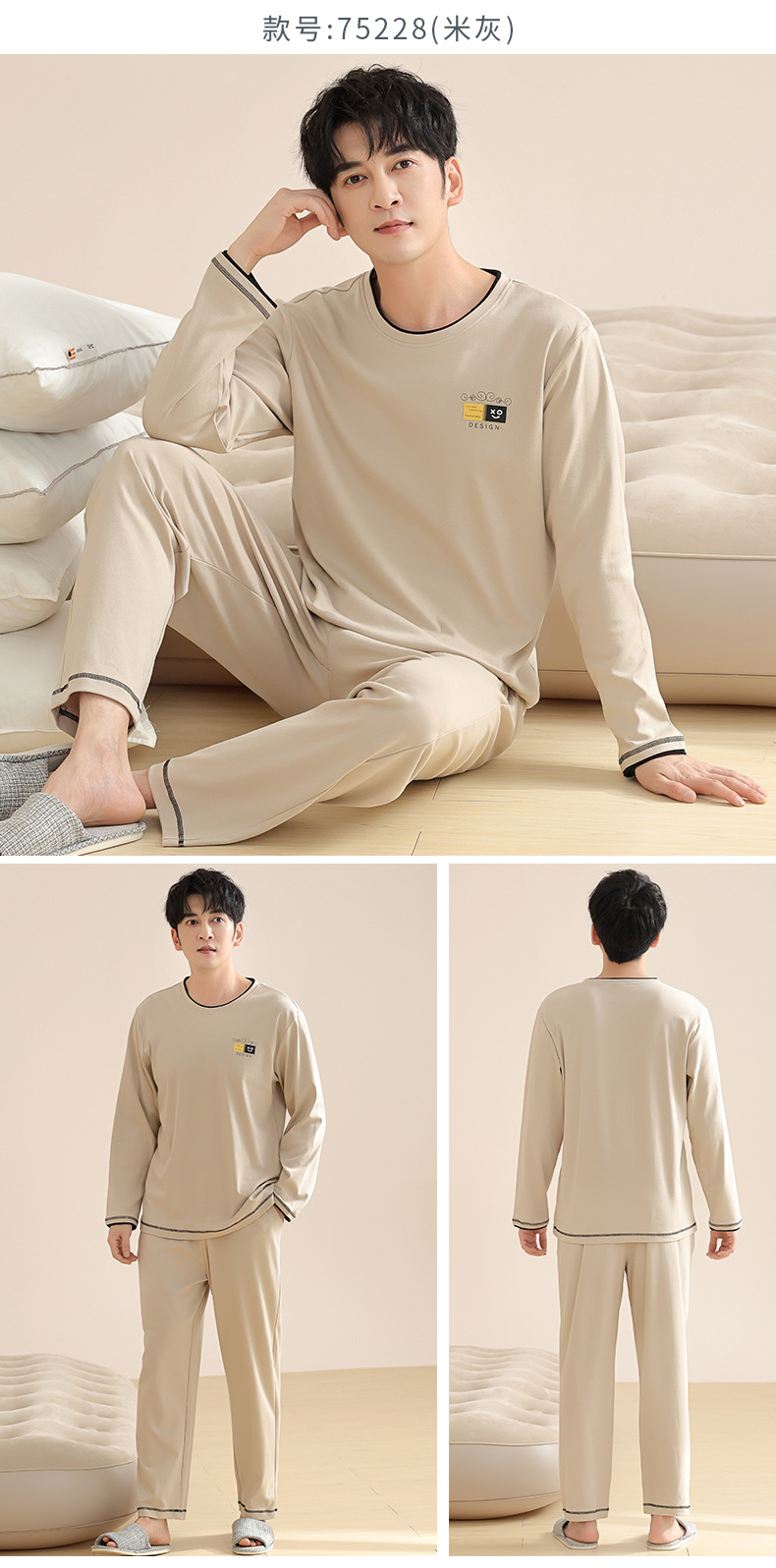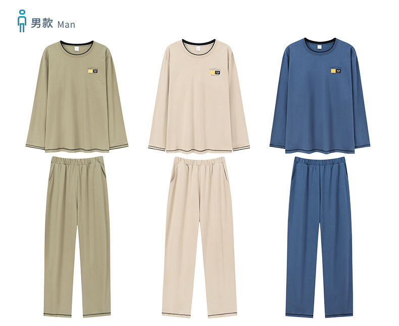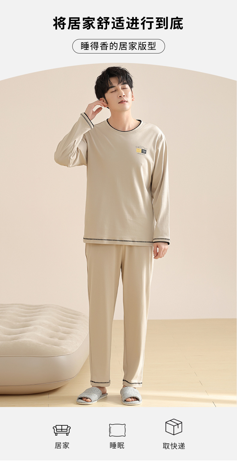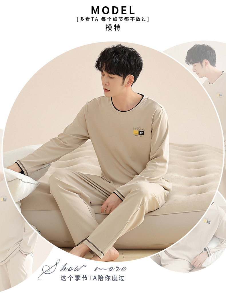 새로운 스타일 잠옷 남자의 가을 순면 긴 소매 세트 청소년 봄과 가을 순면 플러스 사이즈 아웃웨어 남자의 가정 의류스토어 가기