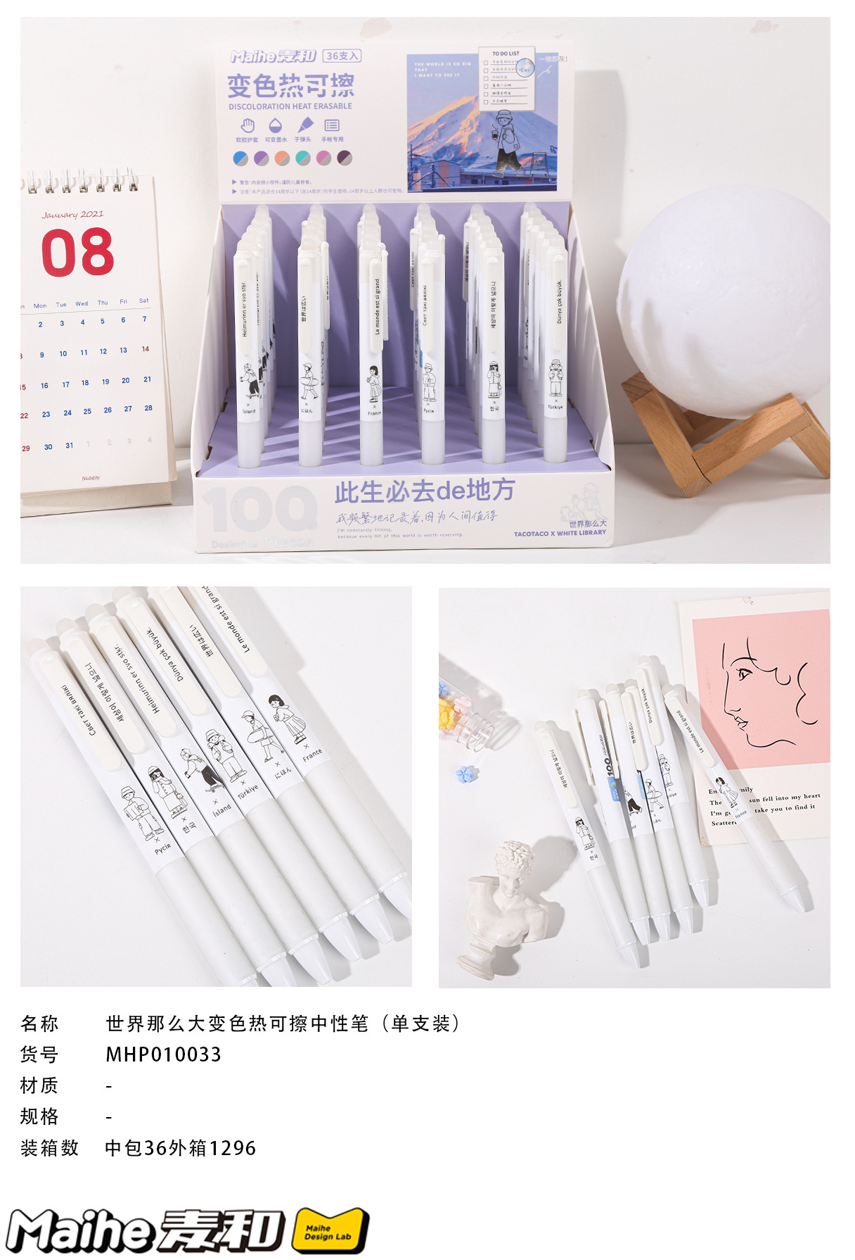 Maihe 문구 TACO 월드 소 큰 색 변경 열 지울 수있는 젤 펜 학생 창작 간단한 마술 쉽게 지울 수있는 펜