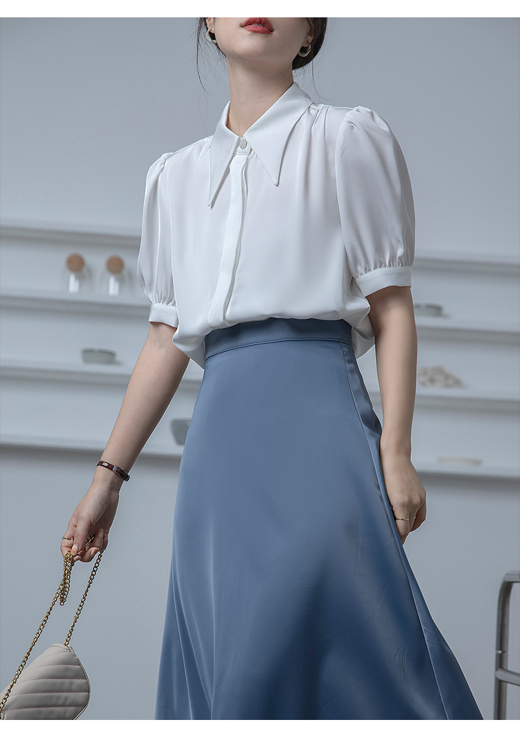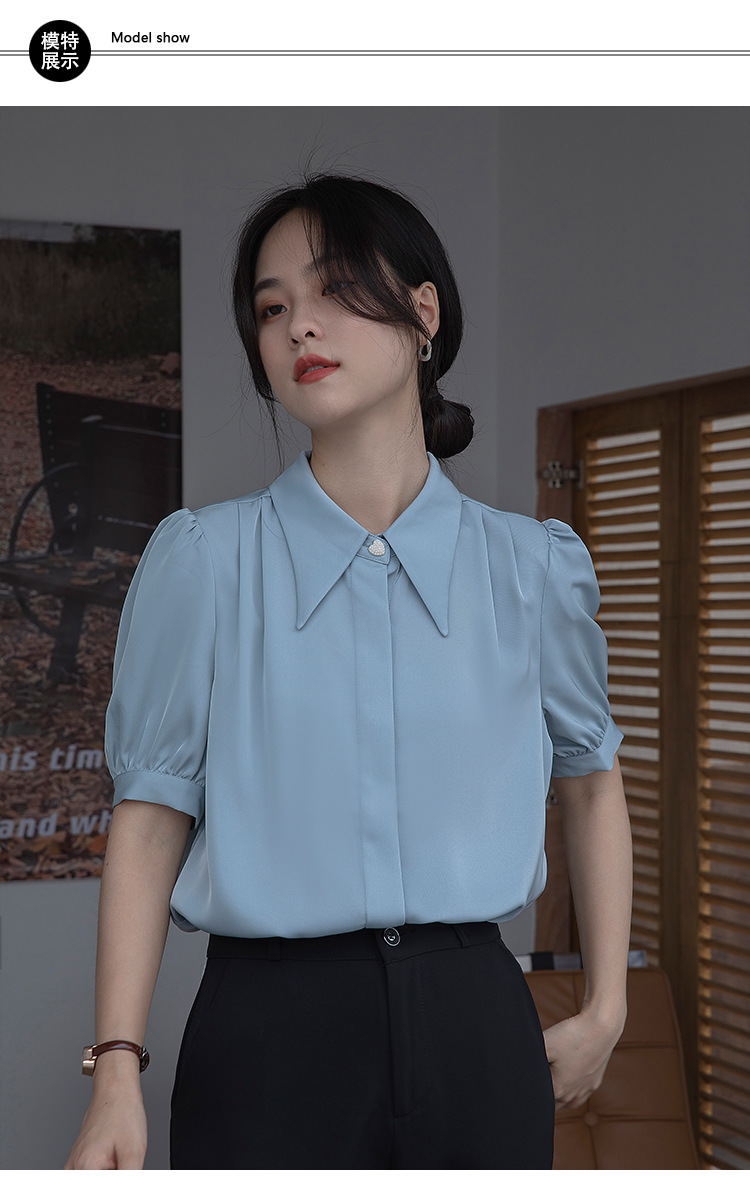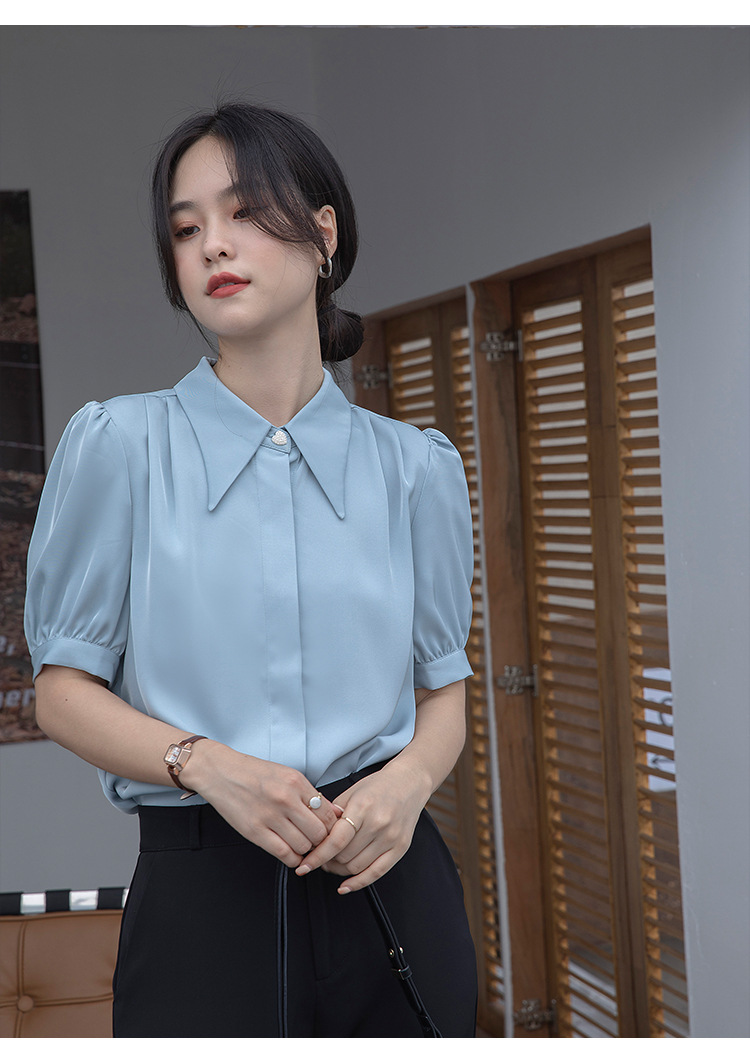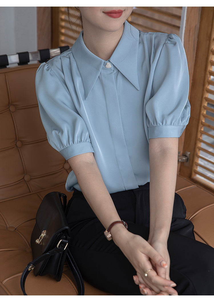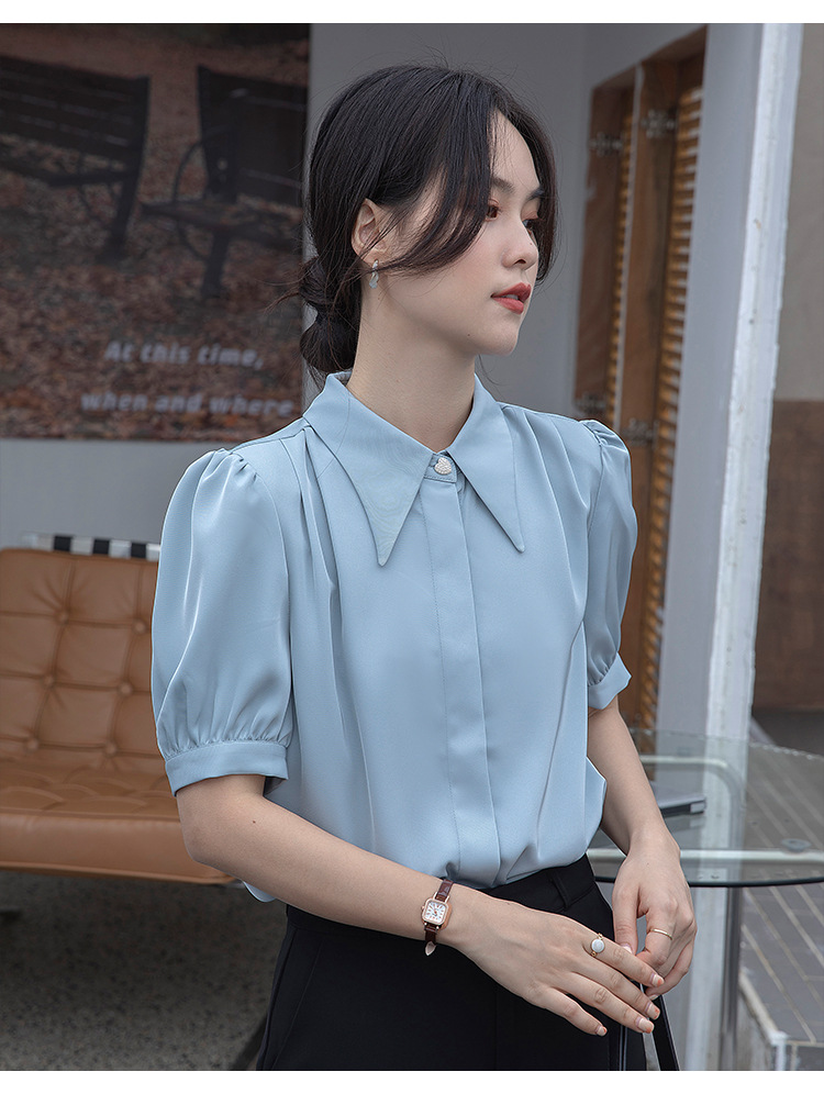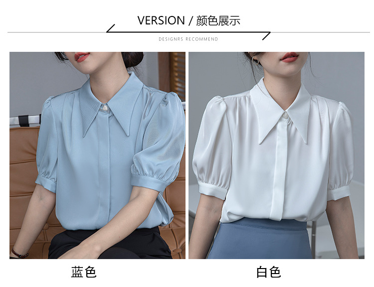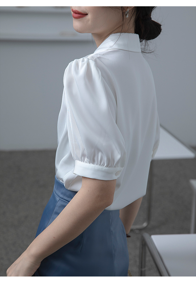 프랑스 스타일 우아한 흰색 셔츠 디자인 감각 틈새 짧은 소매 쉬폰 셔츠 여성용 여름 얇은 퍼프 슬리브 탑스토어 가기