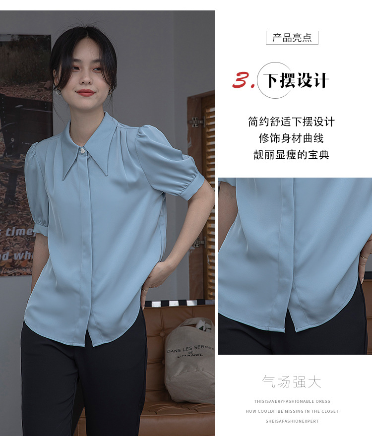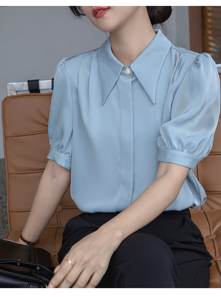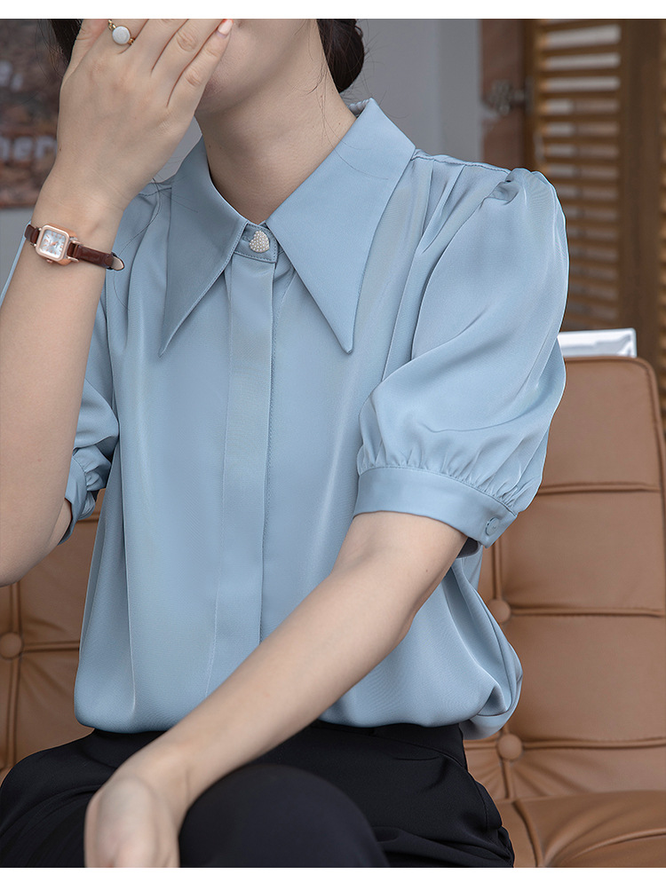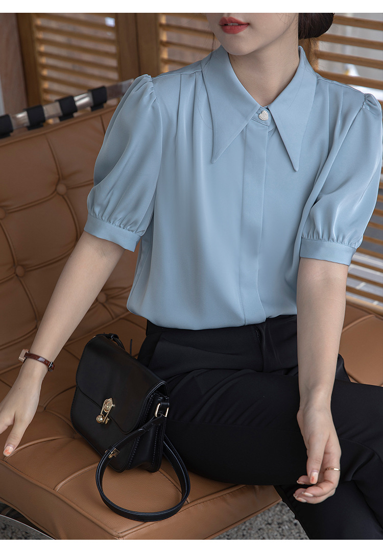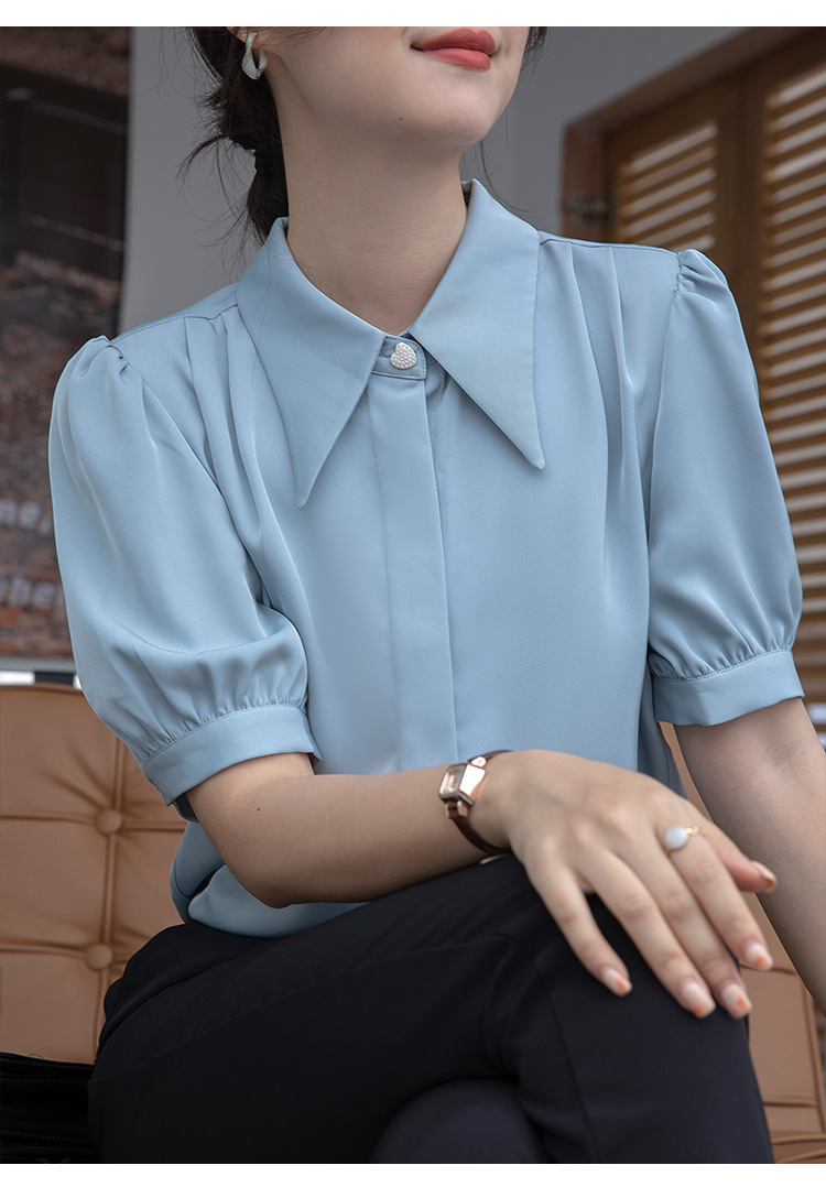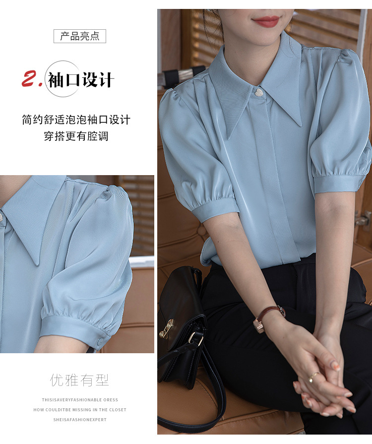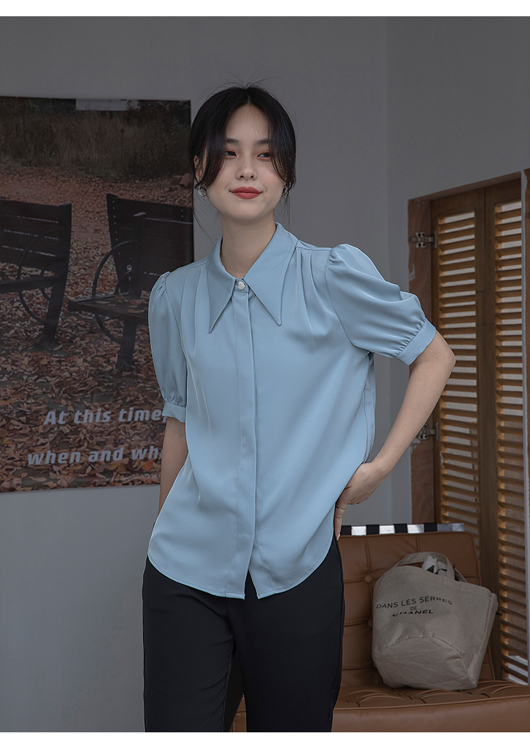 프랑스 스타일 우아한 흰색 셔츠 디자인 감각 틈새 짧은 소매 쉬폰 셔츠 여성용 여름 얇은 퍼프 슬리브 탑스토어 가기