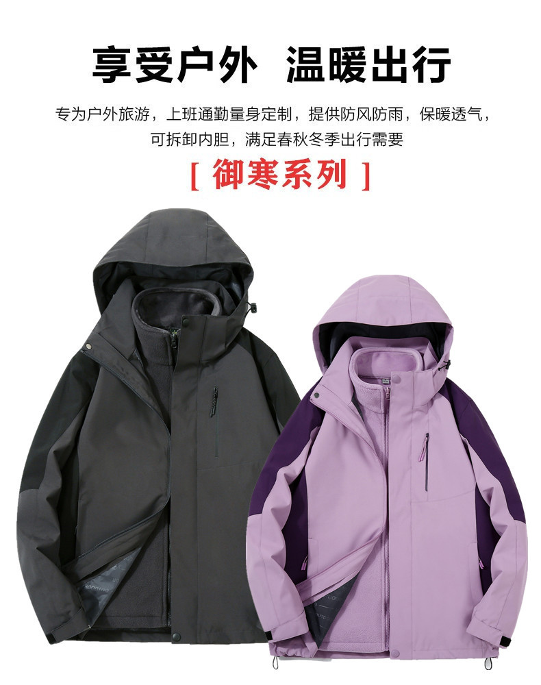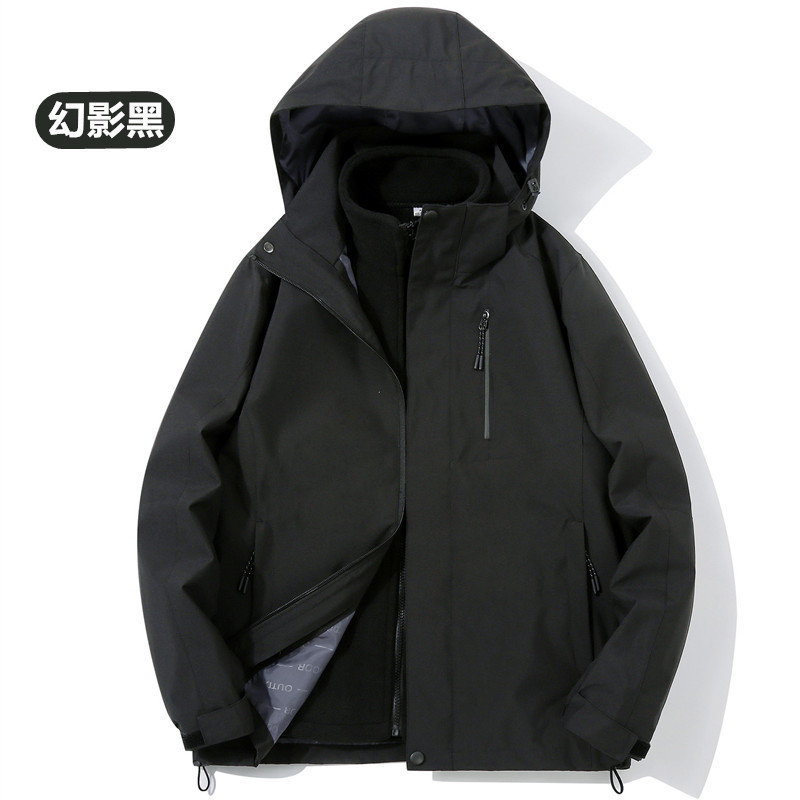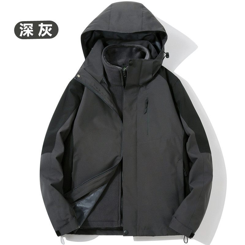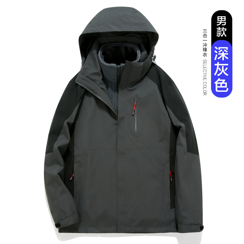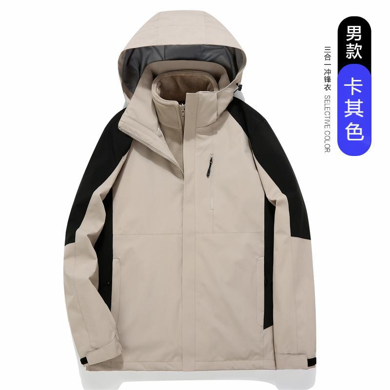 3도어 아웃도어 의류, 플리스 안감, 방풍 및 방수, 남녀 동일 스타일, 타이저우 쓰리인원 재킷, 작업복 로고