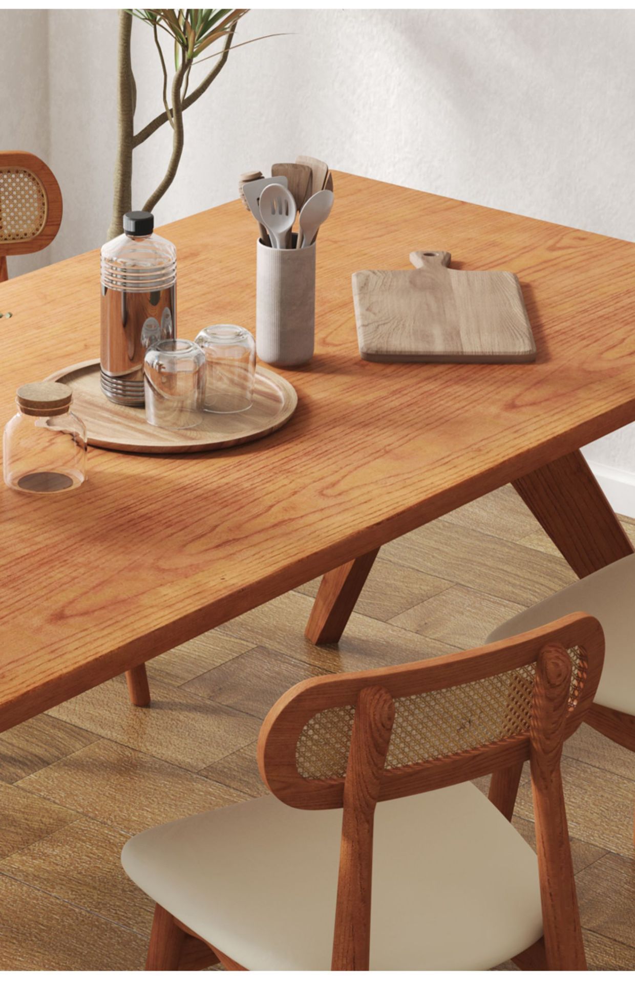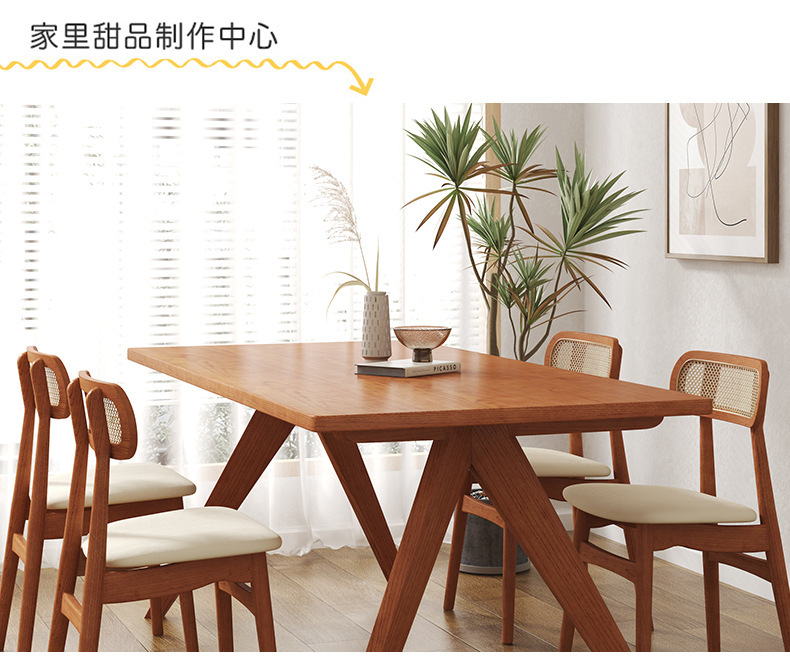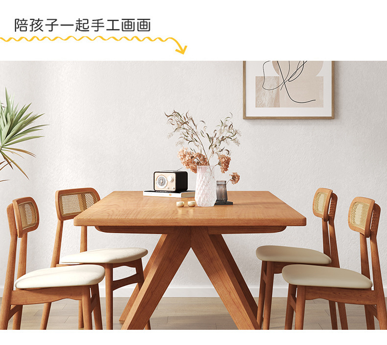 모든 단단한 나무 식탁 및 의자 조합 테이블 나무 곡물 두꺼운 북유럽 가정용 직사각형 사무실 책상 로그 일본식 식탁