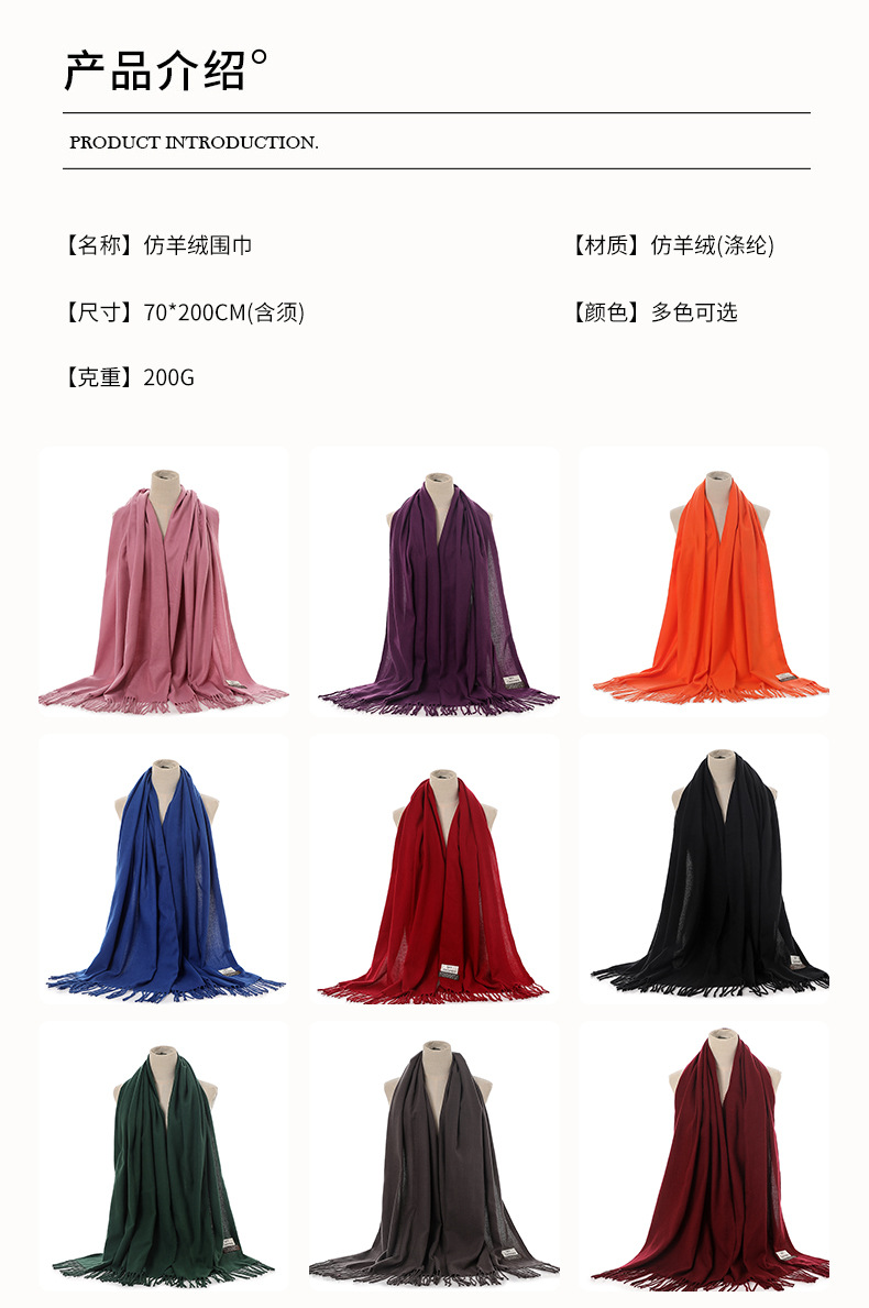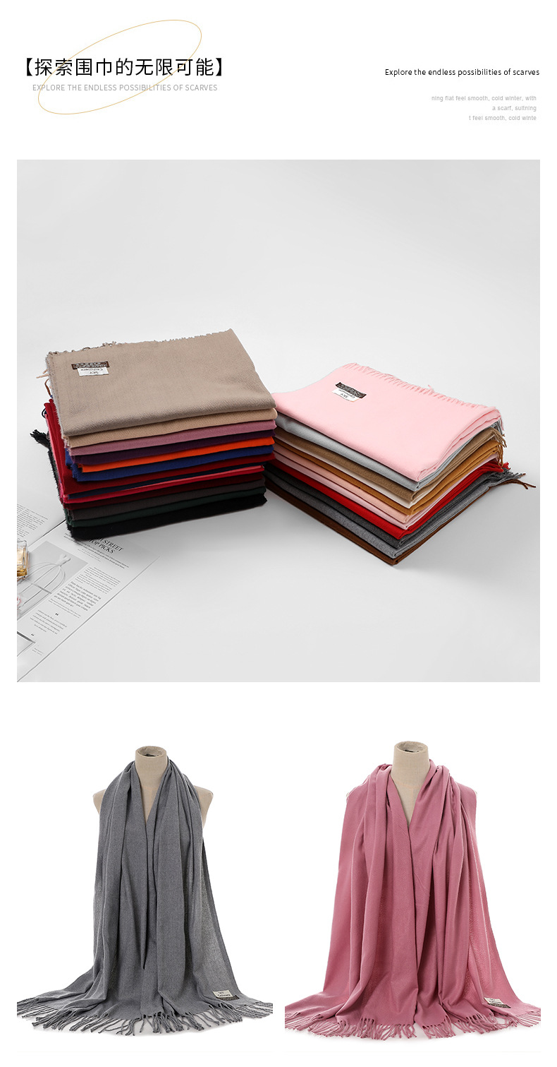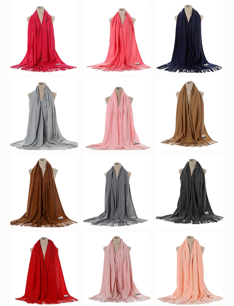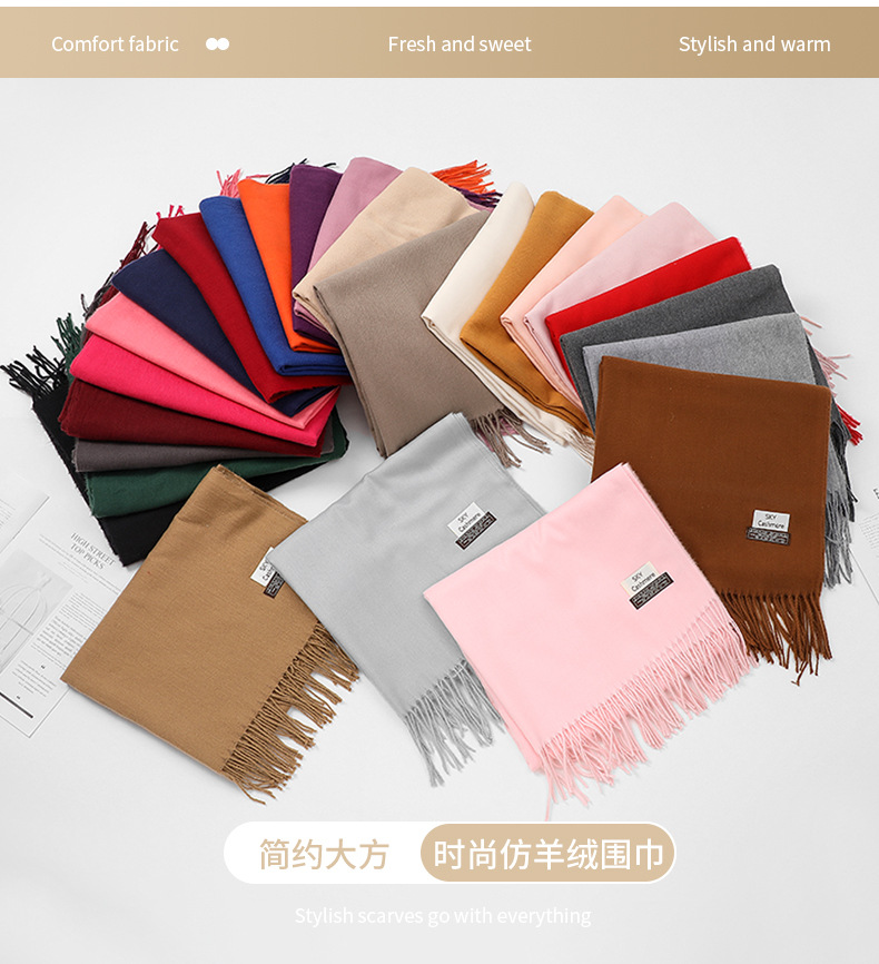 2024 새로운 단색 캐시미어 스카프 여성의 가을과 겨울 따뜻한 스카프 패딩 가시 머리 SKY 목도리 공장 도매스토어 가기