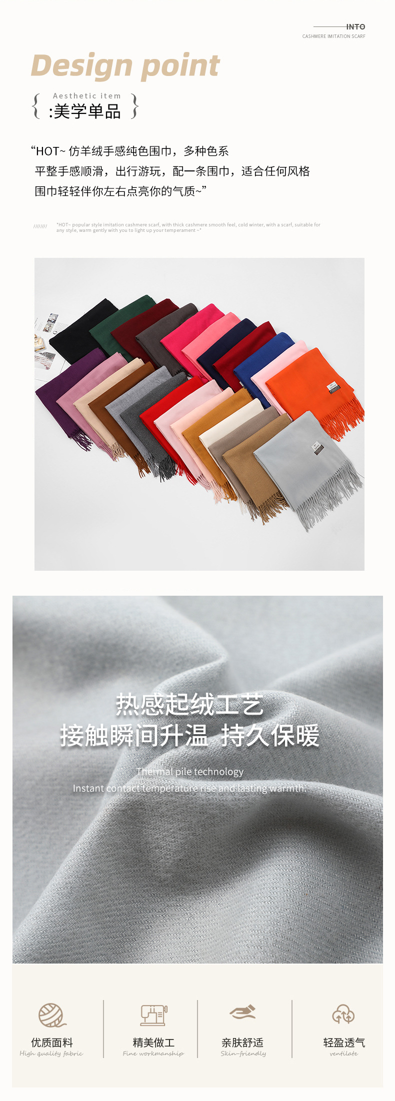 2024 새로운 단색 캐시미어 스카프 여성의 가을과 겨울 따뜻한 스카프 패딩 가시 머리 SKY 목도리 공장 도매