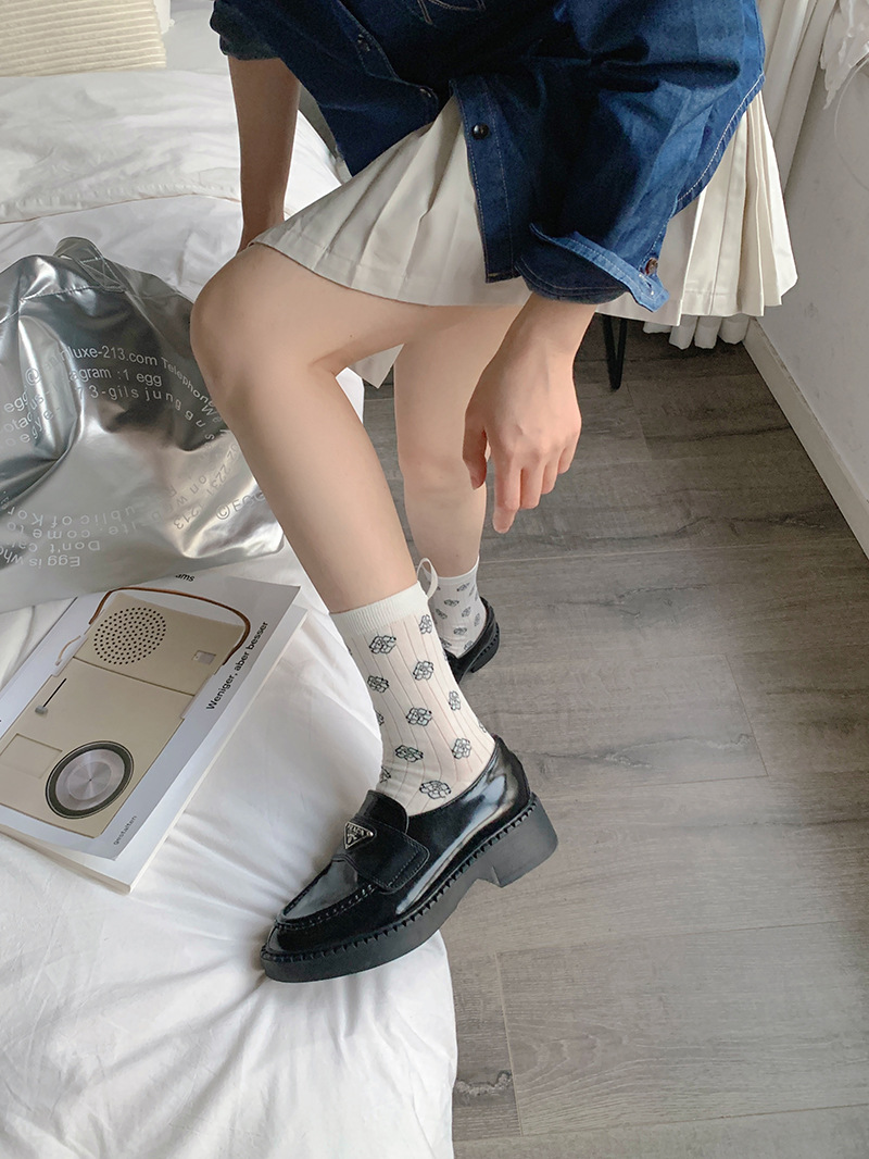 동백 양말 천 라벨 튜브 양말 여성용 조수 양말 흑백 작은 향기로운 바람 더미 양말 얇은스토어 가기