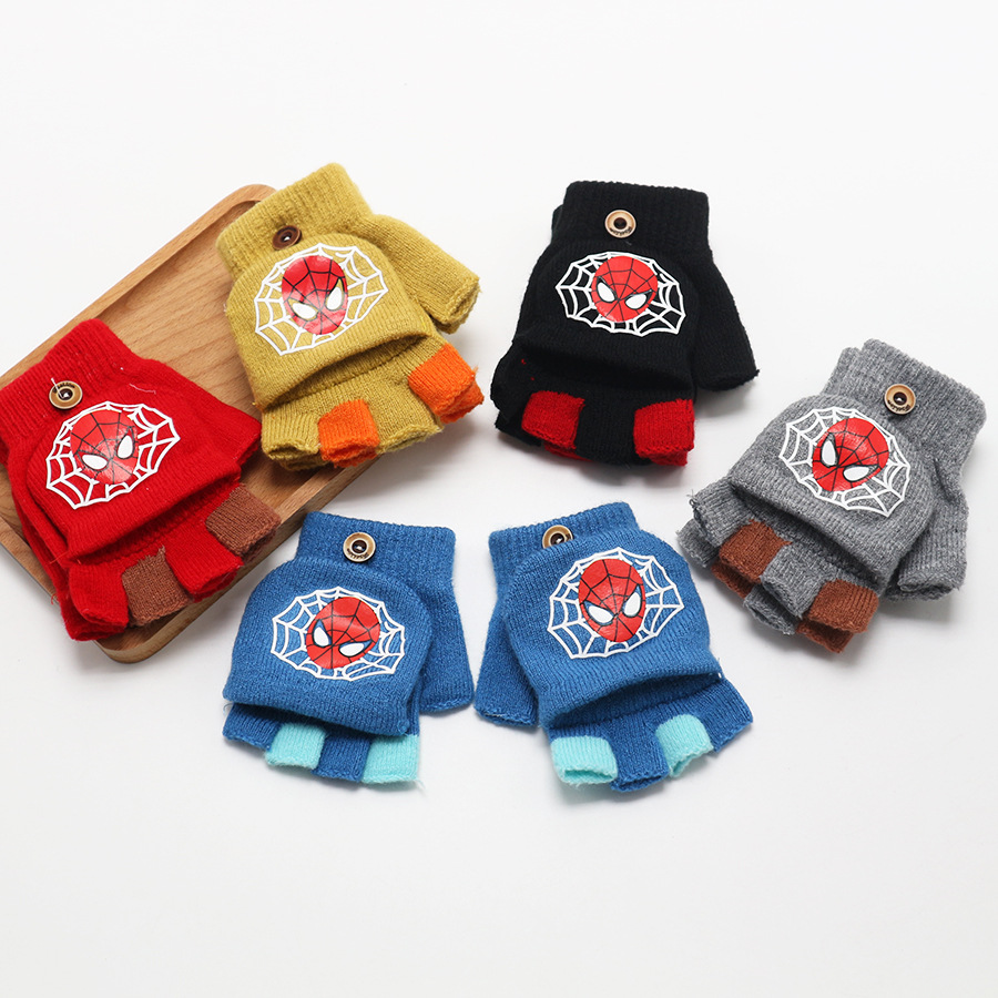 어린이 플립 장갑 소년과 소녀 반 손가락 어린이 겨울 어린이 필기 양모 니트 따뜻한 방한 스파이더 맨