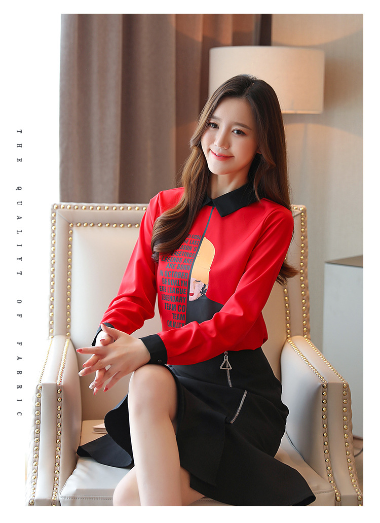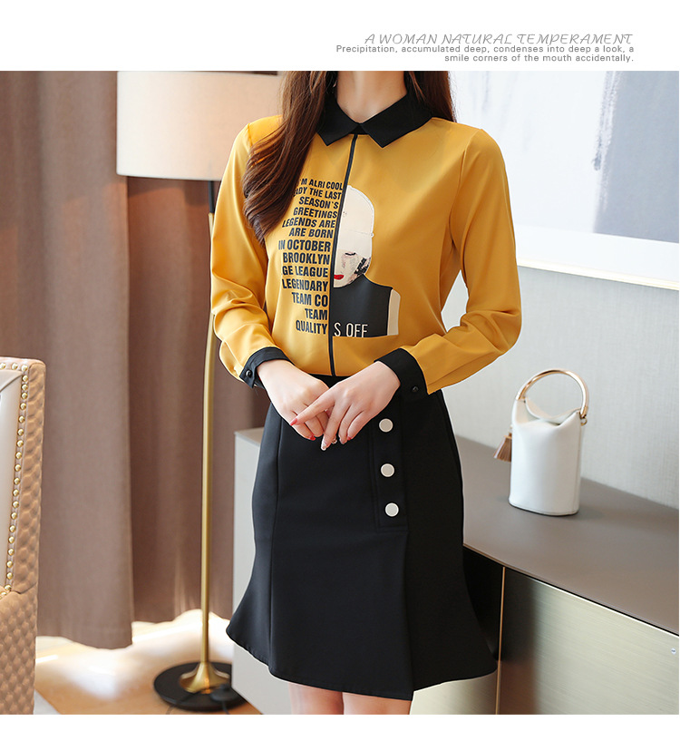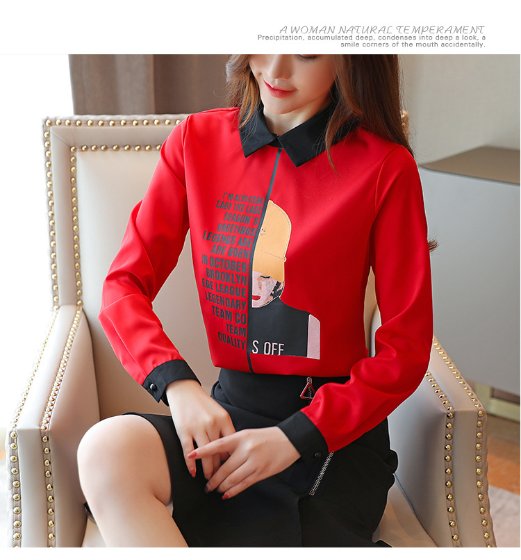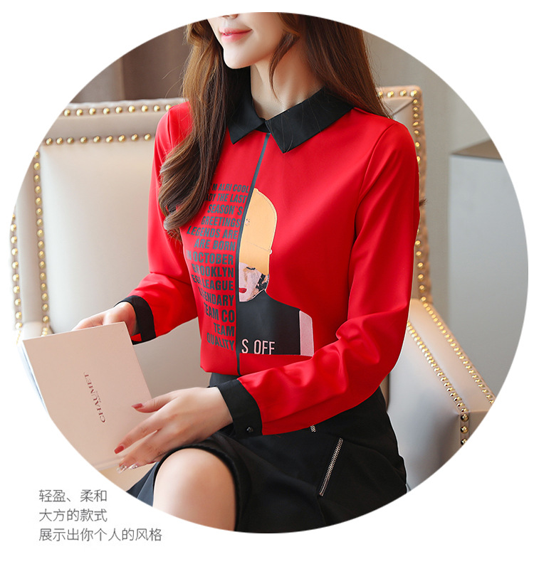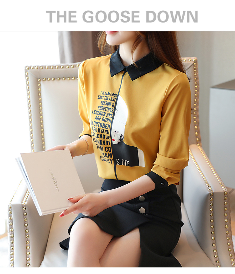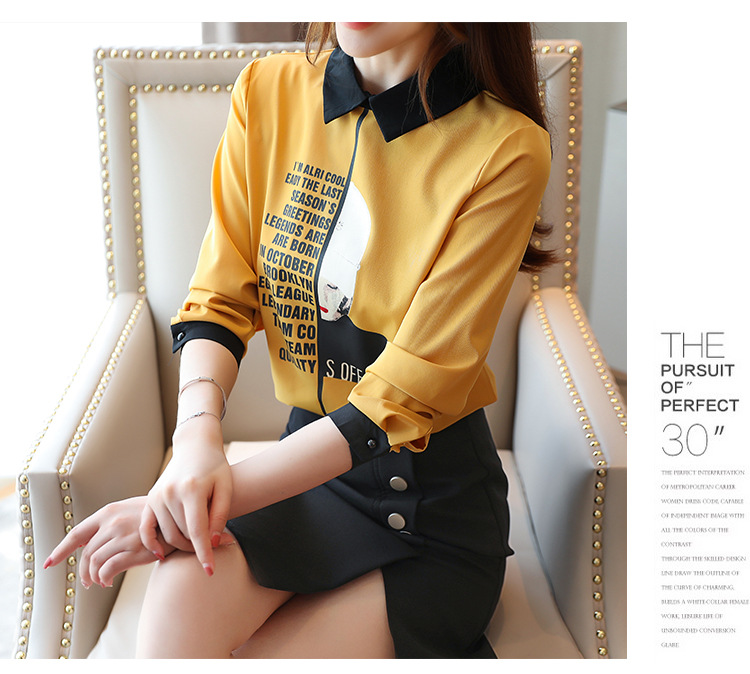 디자인감 있는 레터 프린트 여아 쉬폰 셔츠 2025 봄 한국 스타일 루즈핏 긴팔 상의스토어 가기