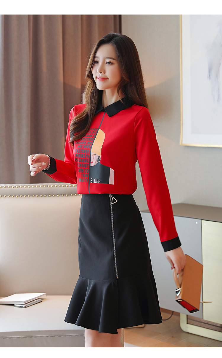 디자인감 있는 레터 프린트 여아 쉬폰 셔츠 2025 봄 한국 스타일 루즈핏 긴팔 상의
