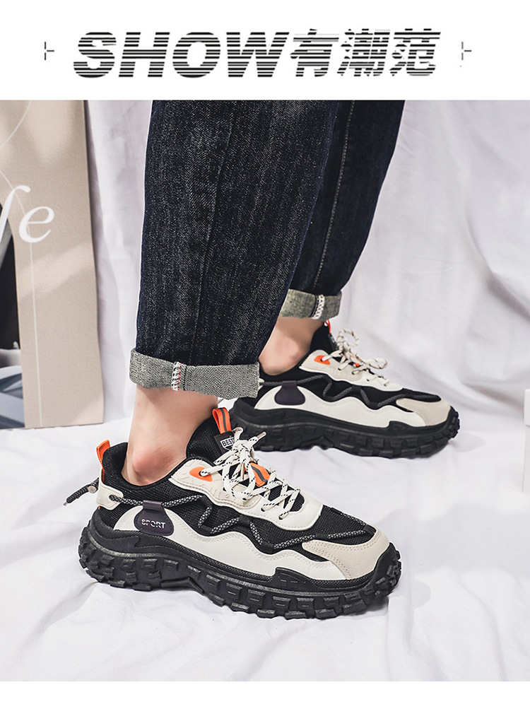 노동 보험 남성 신발 가을 새로운 통기성 메쉬 스포츠 신발 남성 트렌디 모든 경기 두꺼운 밑창 미끄럼 방지 아빠 신발 트렌디 신발스토어 가기