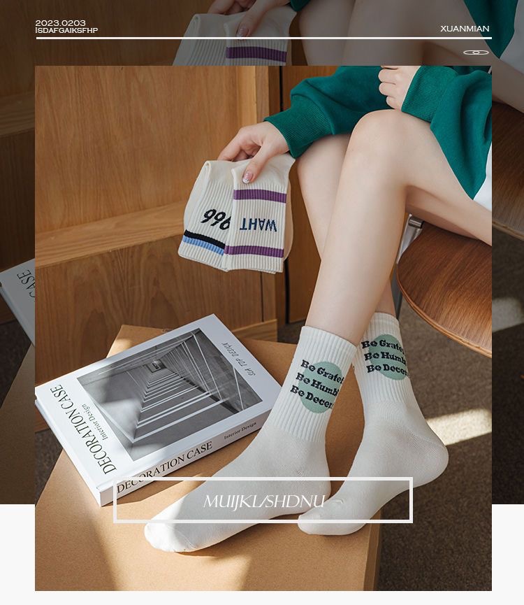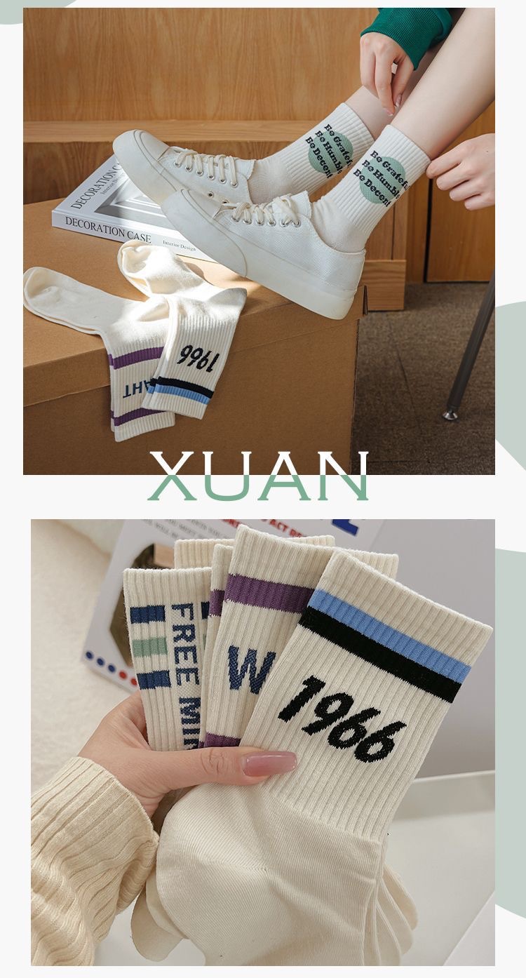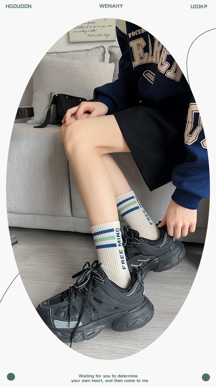 양말 여자의 가을과 겨울 유행 학생 판 스타킹 한국 일본 줄무늬 스포츠 편지 스타킹스토어 가기
