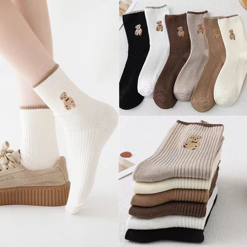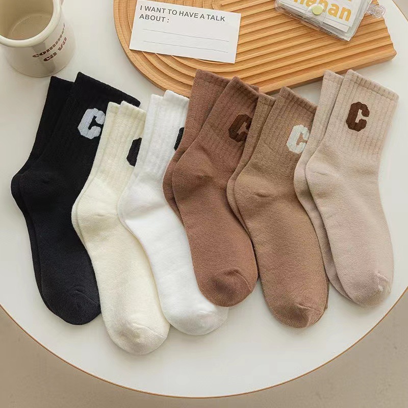 • 여자 미들 튜브 [밀크 티 단색 문 양말]