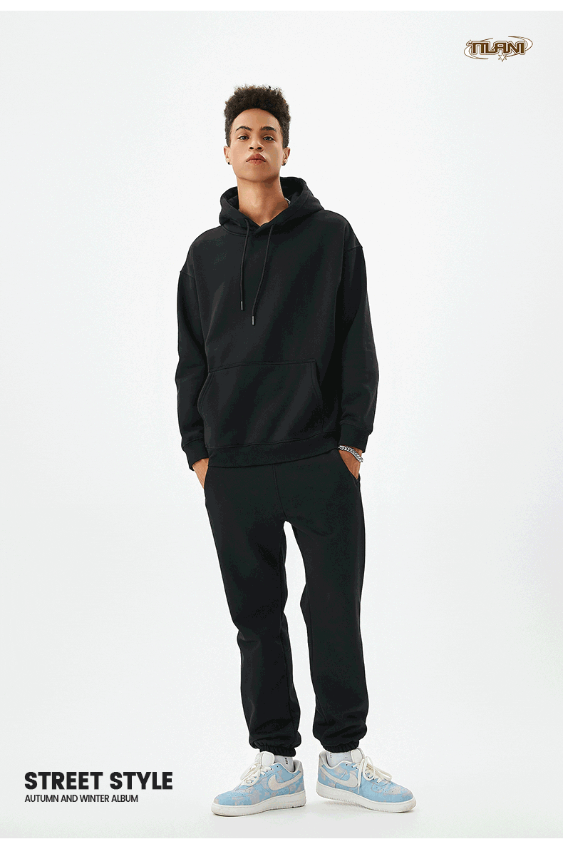 TILANI 가을과 겨울 370g 기모 두꺼운 폴라 양털 욕실 바지 허리 느슨한 바지 단색 캐주얼 발가락 스포츠 바지스토어 가기