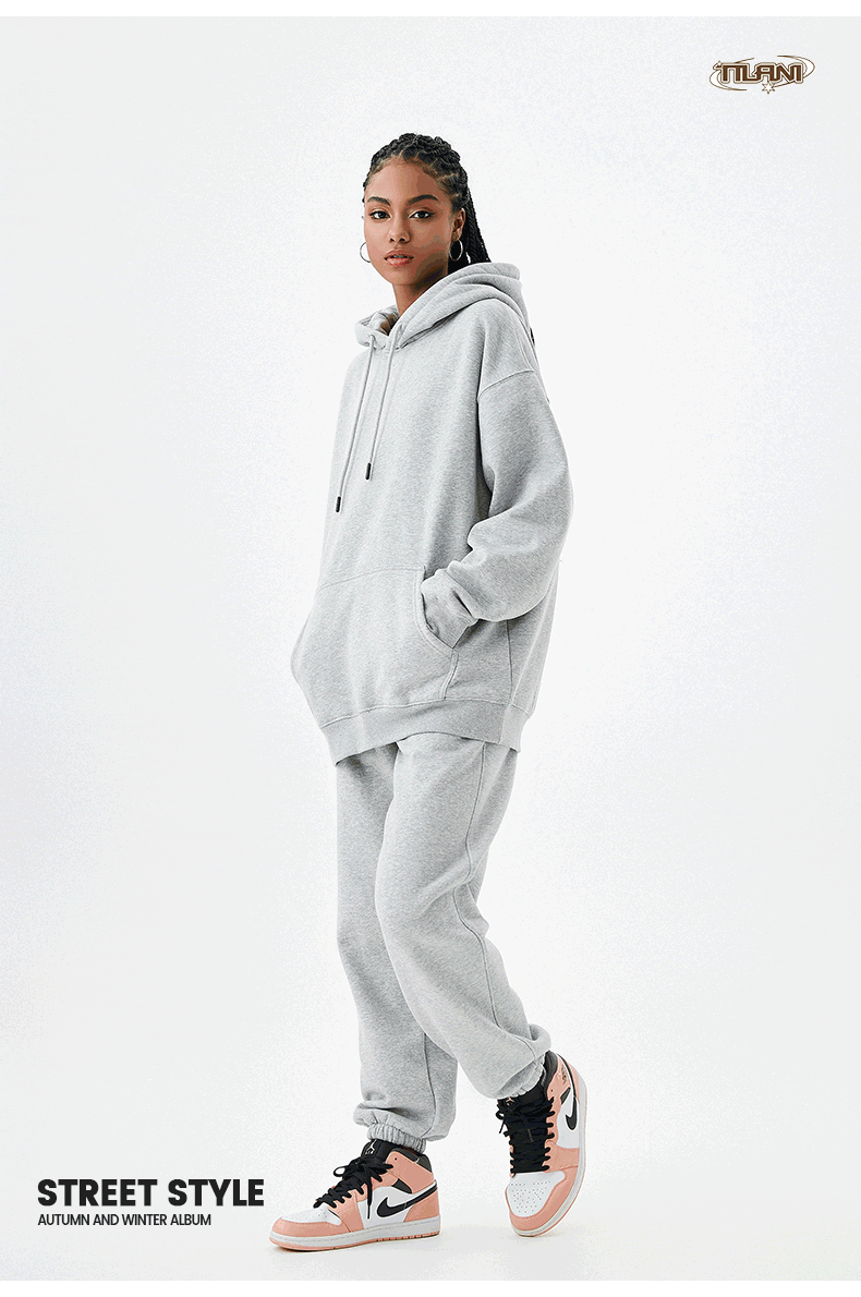TILANI 가을과 겨울 370g 기모 두꺼운 폴라 양털 욕실 바지 허리 느슨한 바지 단색 캐주얼 발가락 스포츠 바지