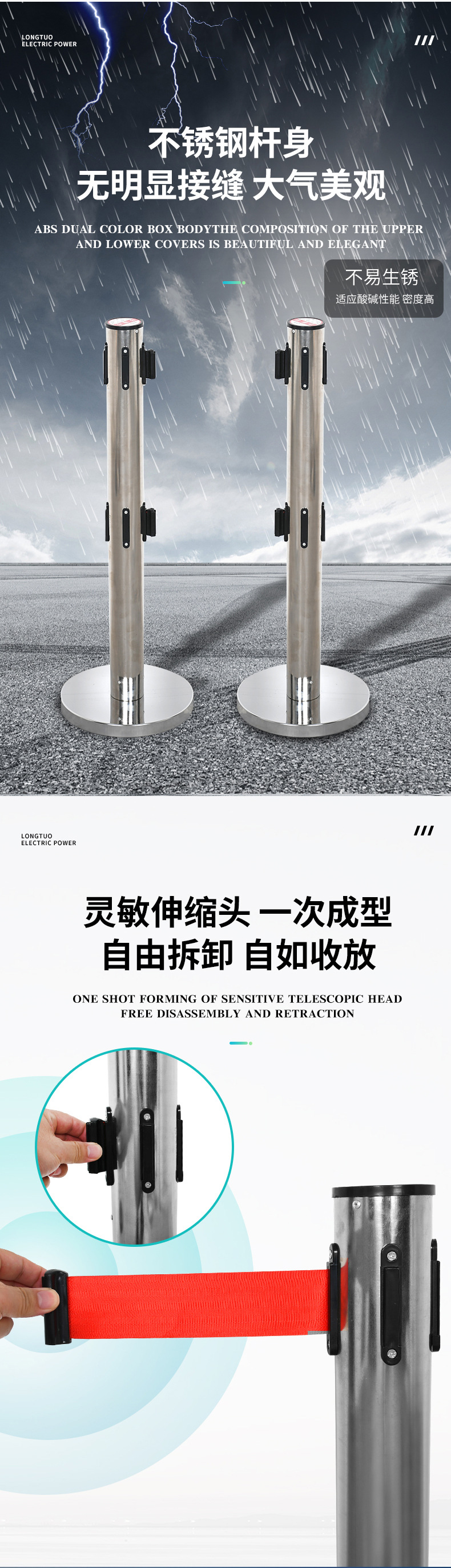 스테인레스 스틸 텔레스코픽 펜스 경고 라인 1 미터 절연 벨트 텔레스코픽 난간 격리 칼럼 은행 울타리 가드 레일스토어 가기