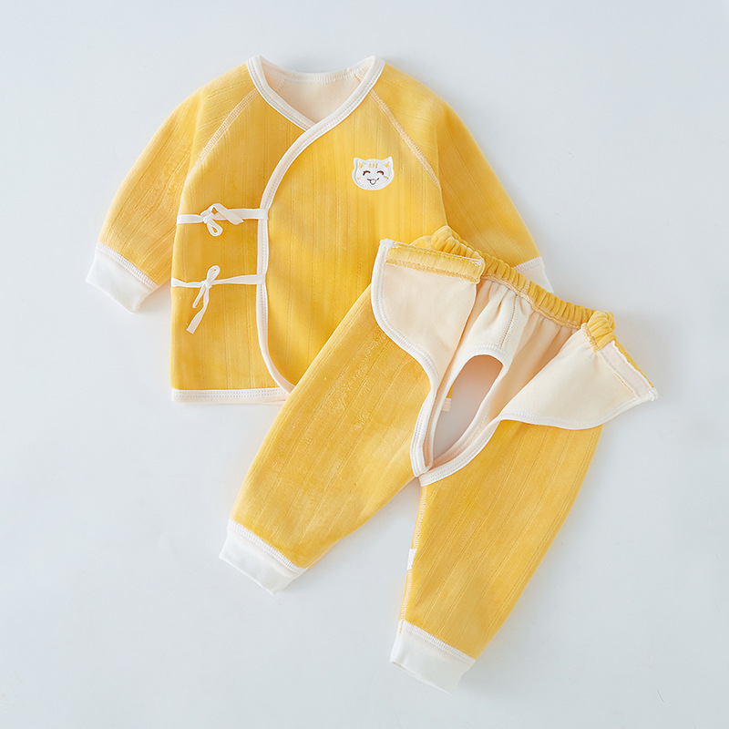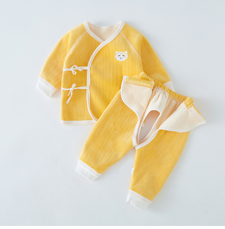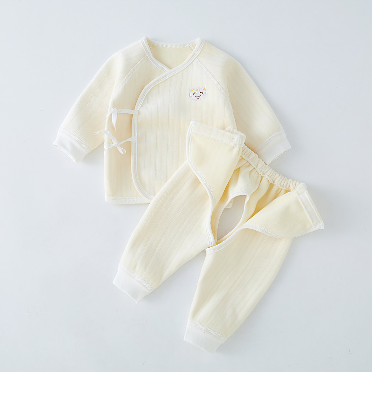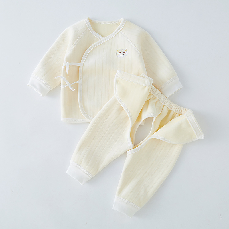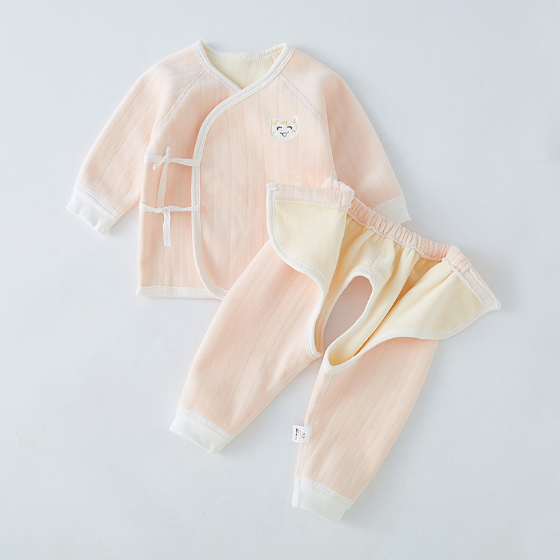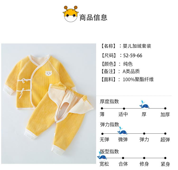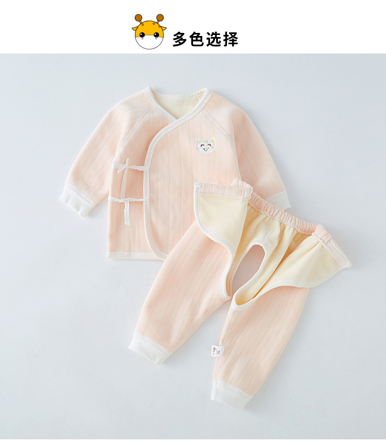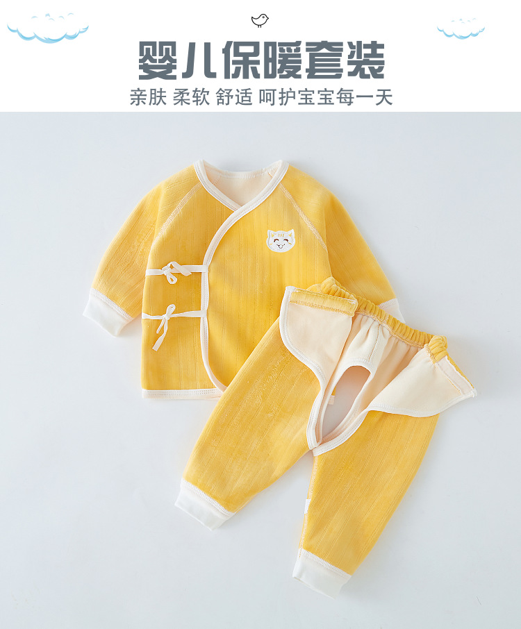 신생아 가을과 겨울 긴 소매 바지 세트 기모 두꺼운 신생아 52 사이즈 레이스 업 아기 따뜻한 분할 수도사 옷