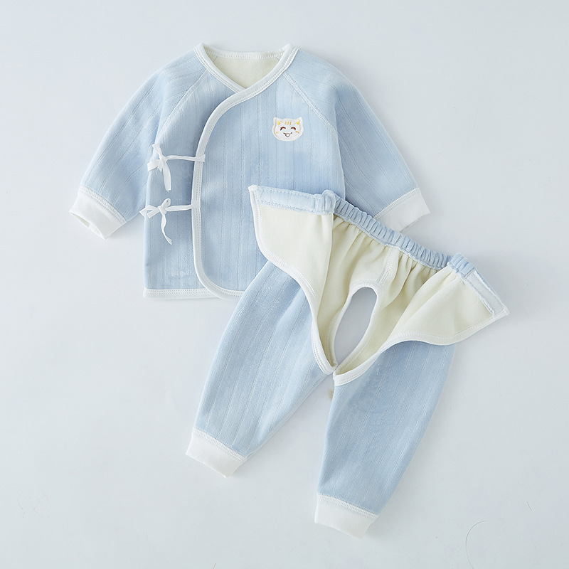 신생아 가을과 겨울 긴 소매 바지 세트 기모 두꺼운 신생아 52 사이즈 레이스 업 아기 따뜻한 분할 수도사 옷스토어 가기