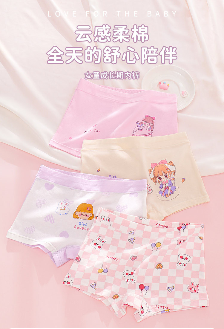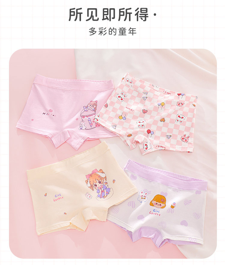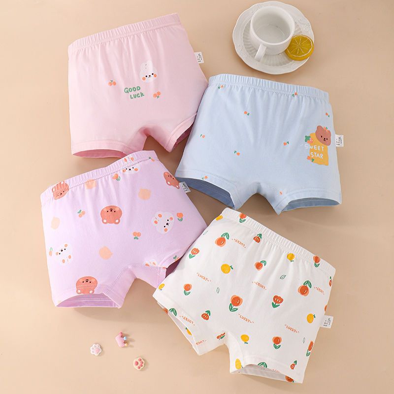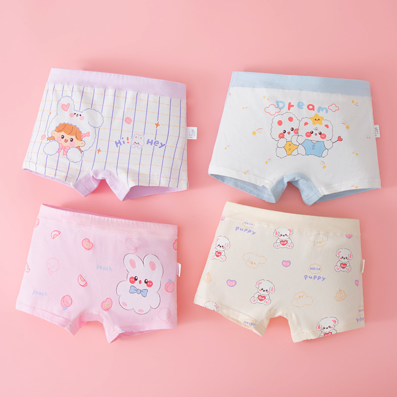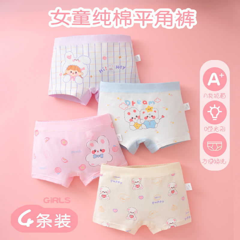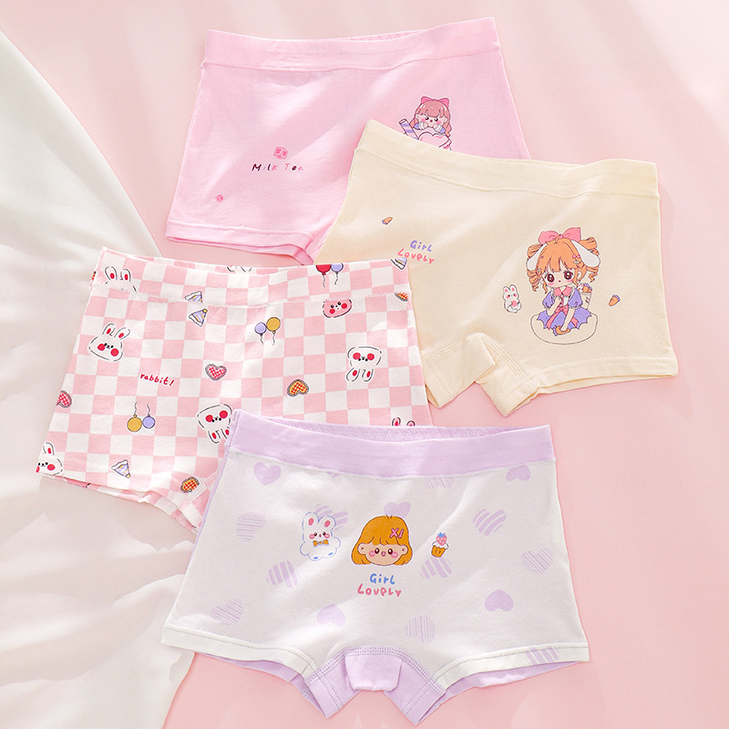 여아 속옷 순면 클래스 아기 소녀 어린이 만화 4 코너 반바지 엉덩이가없는 중형 및 대형 어린이 순면 복서스토어 가기