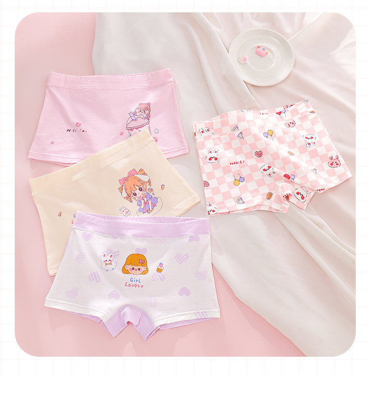 여아 속옷 순면 클래스 아기 소녀 어린이 만화 4 코너 반바지 엉덩이가없는 중형 및 대형 어린이 순면 복서