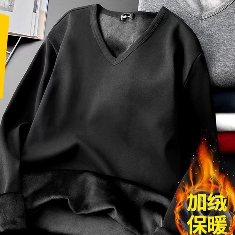긴팔 티셔츠 남자의 열 속옷 기모 두꺼운 라운드 넥 슬림 핏 베이스 셔츠 남자의 단색 내부 착용 가을 옷스토어 가기
