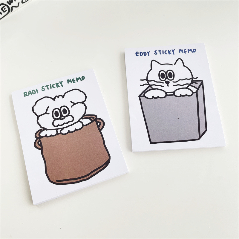 한국 같은 스타일 노트 패드 귀여운 소녀 하트 만화 고양이 강아지 노트 종이 비 점착
