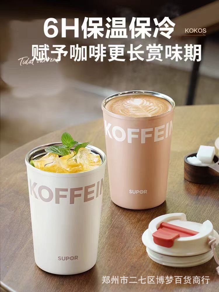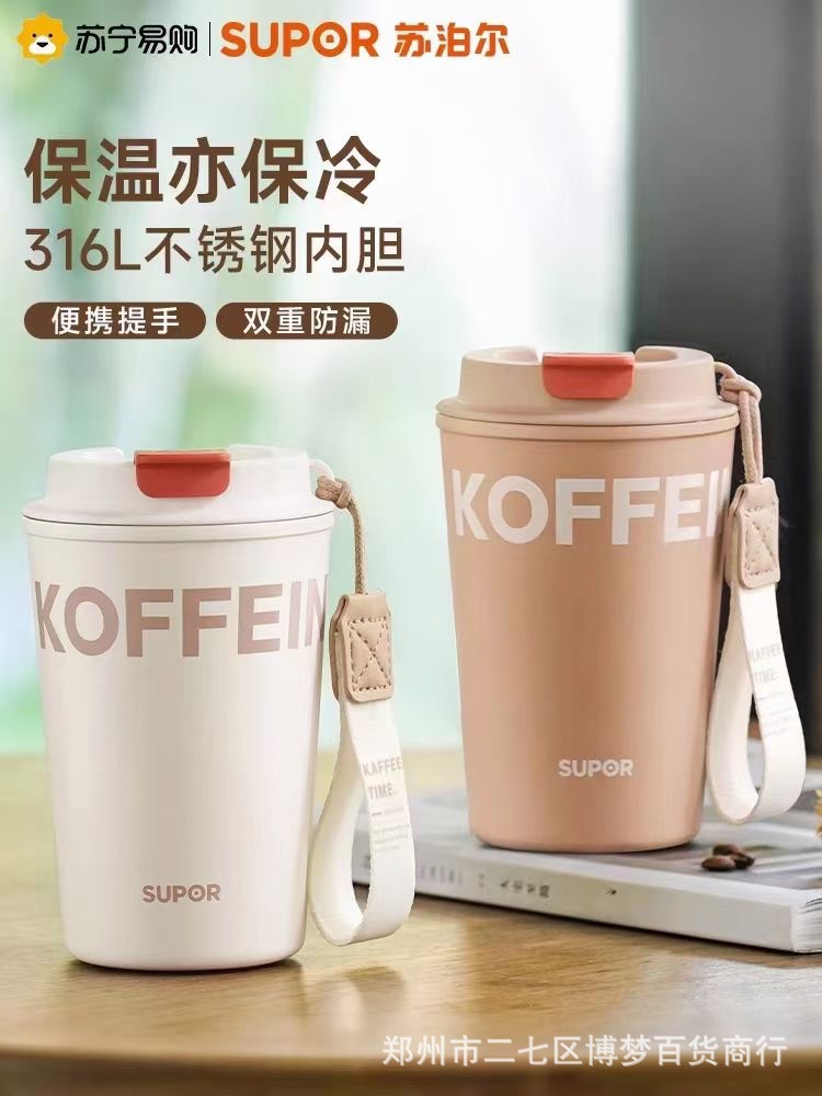 Supor 커피 컵 대용량 보온병 컵 동반 물컵 여성용 하이 컬러 값 316L 스테인리스 스틸 라이너 물컵스토어 가기