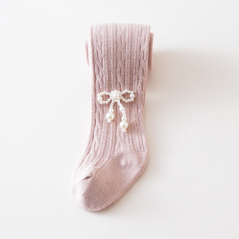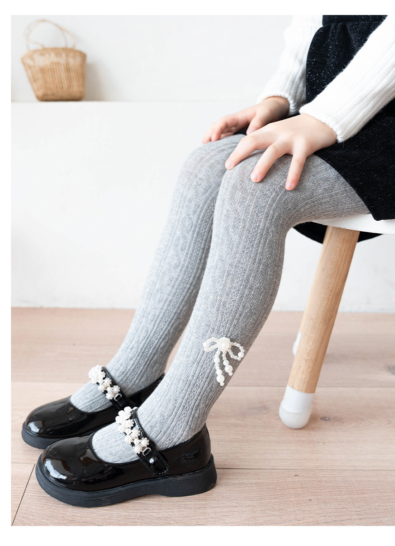 봄과 가을 어린이 팬티 스타킹 여아 발 없는 팬티 스타킹 아기 면 바지 트위스트 진주 활 필링 방지 한국 스타일