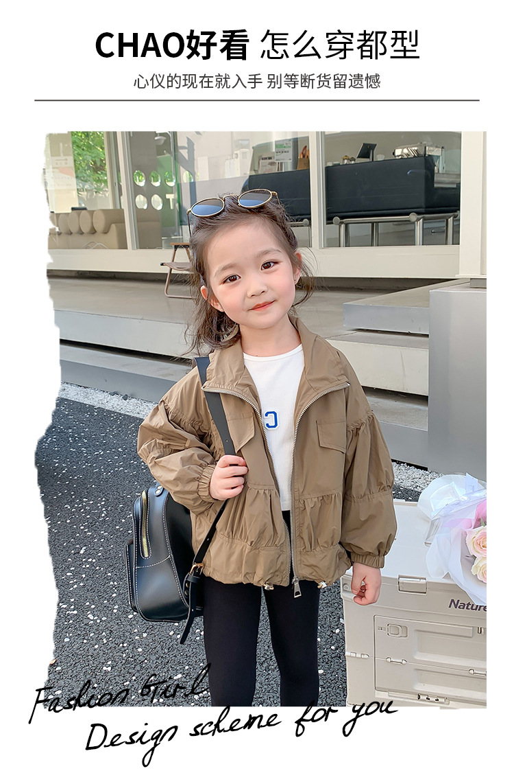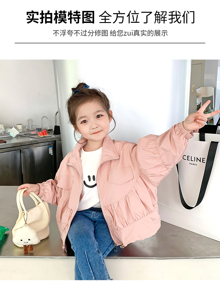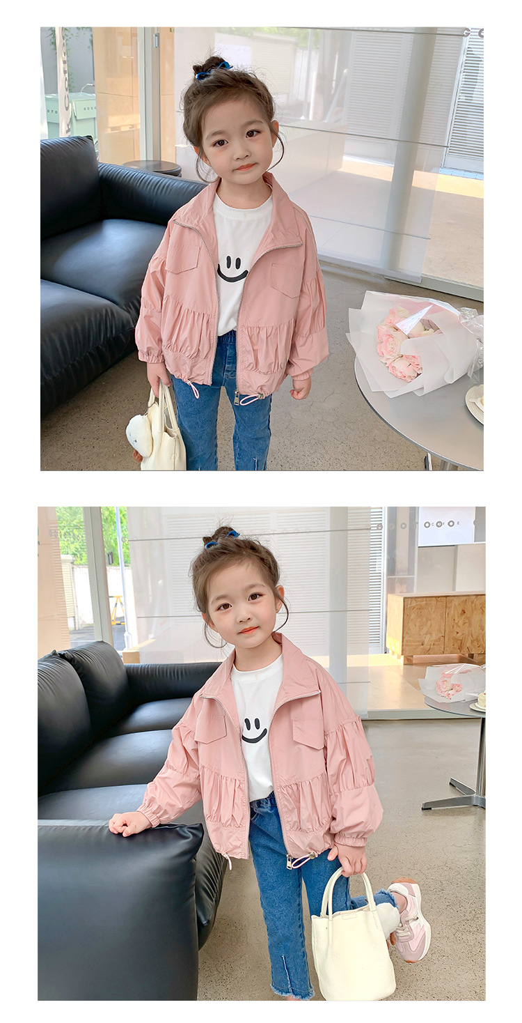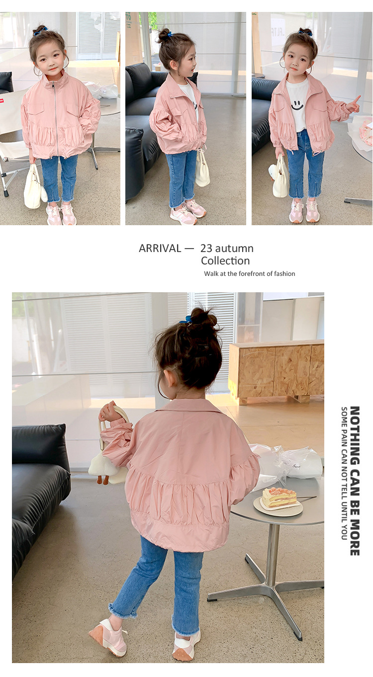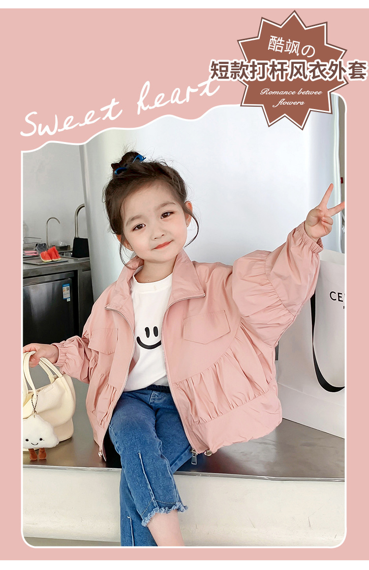 여아용 짧은 주름 윈드브레이커, 2024 봄 가을 신상 스타일, 패셔너블한 아동 인터넷 연예인 재킷, 여아 상의스토어 가기