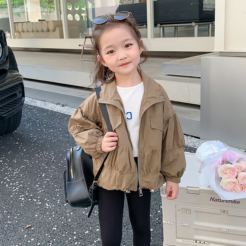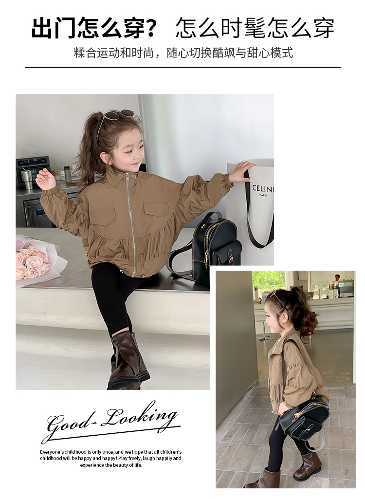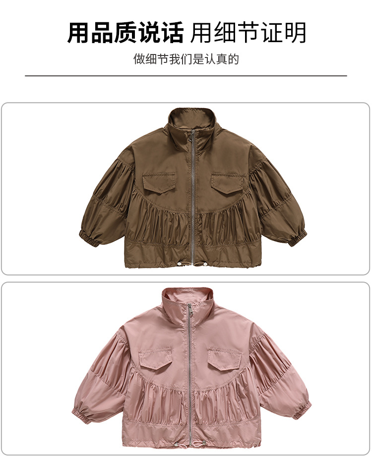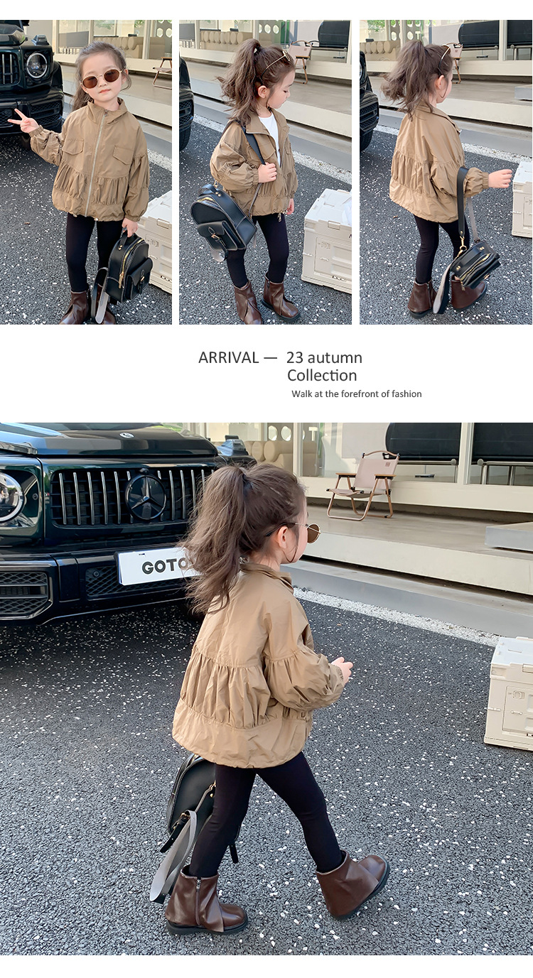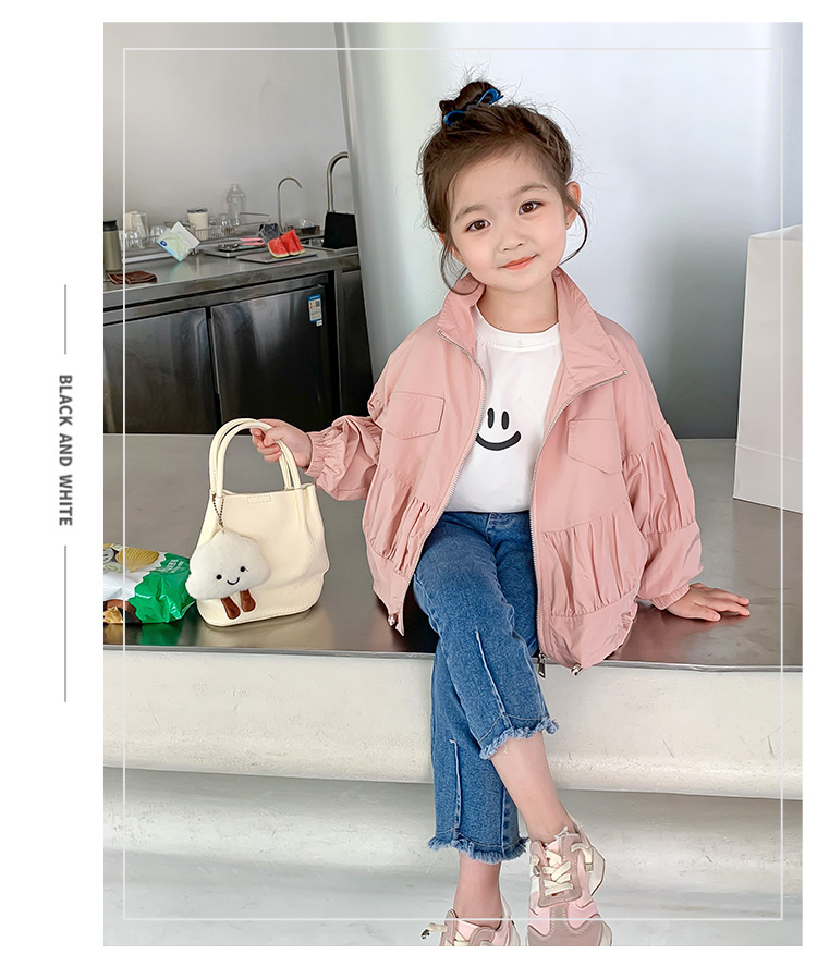 여아용 짧은 주름 윈드브레이커, 2024 봄 가을 신상 스타일, 패셔너블한 아동 인터넷 연예인 재킷, 여아 상의스토어 가기