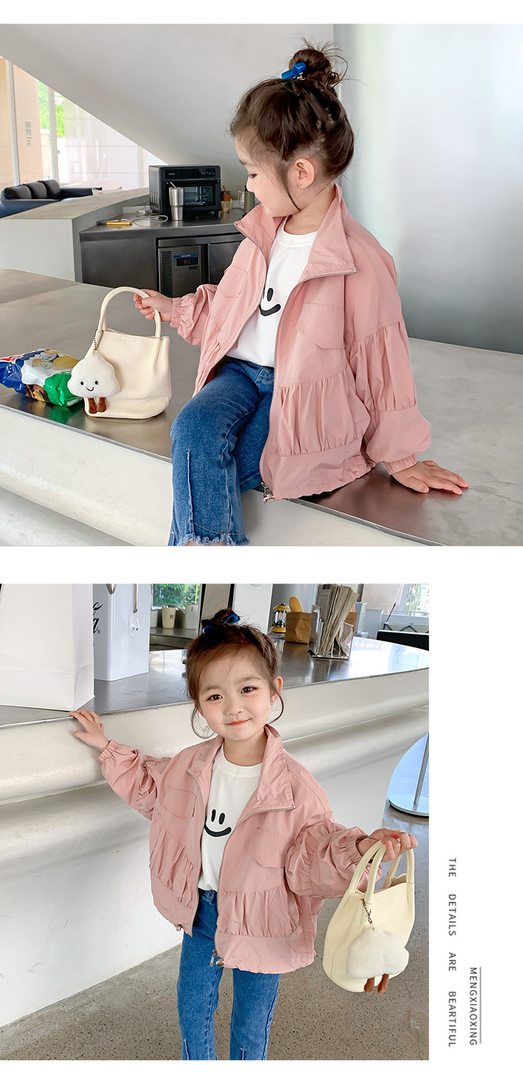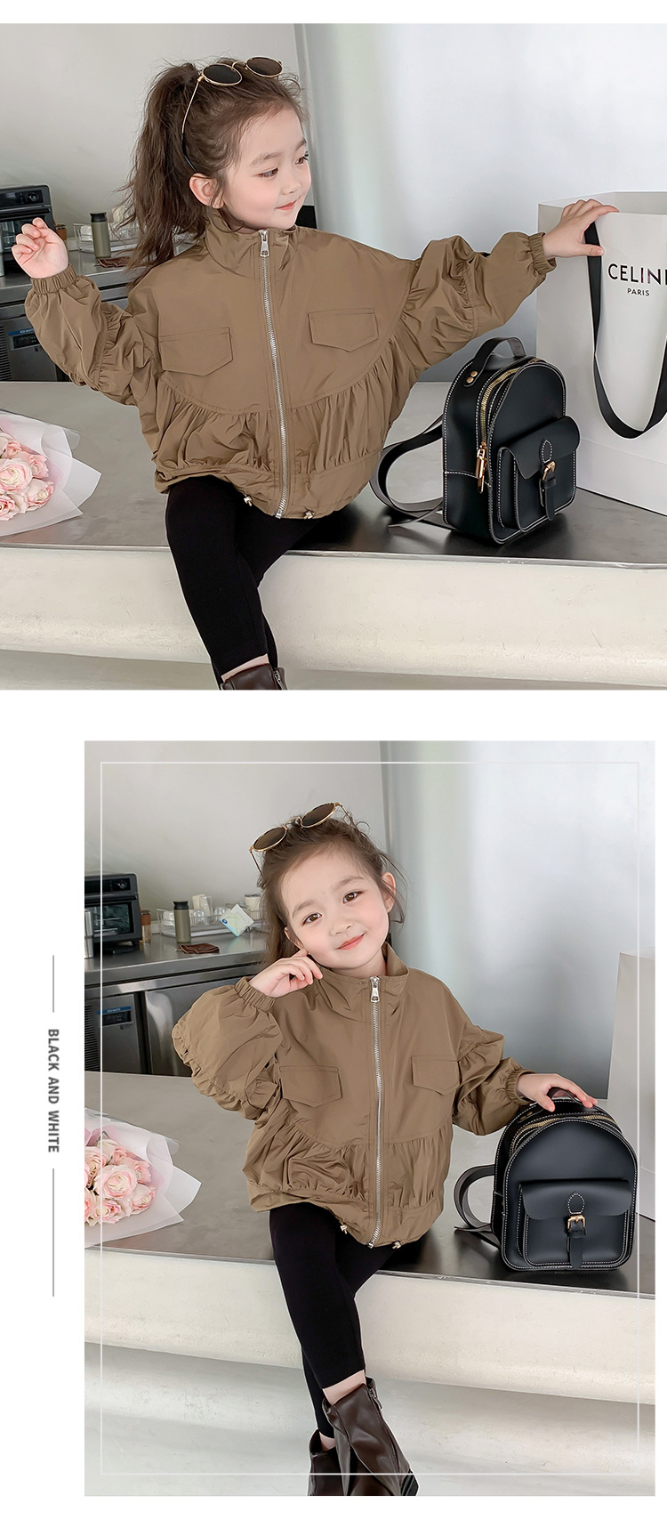 여아용 짧은 주름 윈드브레이커, 2024 봄 가을 신상 스타일, 패셔너블한 아동 인터넷 연예인 재킷, 여아 상의
