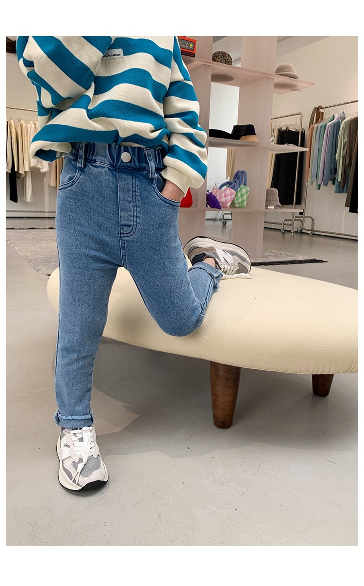 아동복 아동용 신축성 있는 슬림 청바지 여아 슬리밍 바지 한국식 외국 스타일 펜슬 팬츠 봄스토어 가기