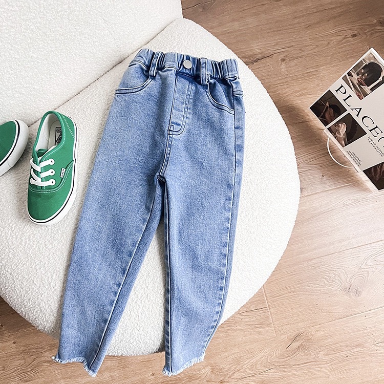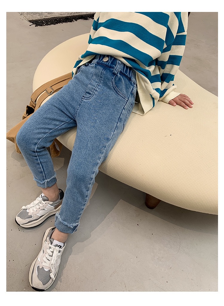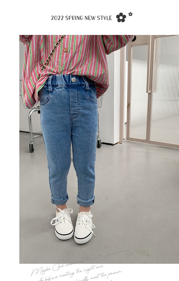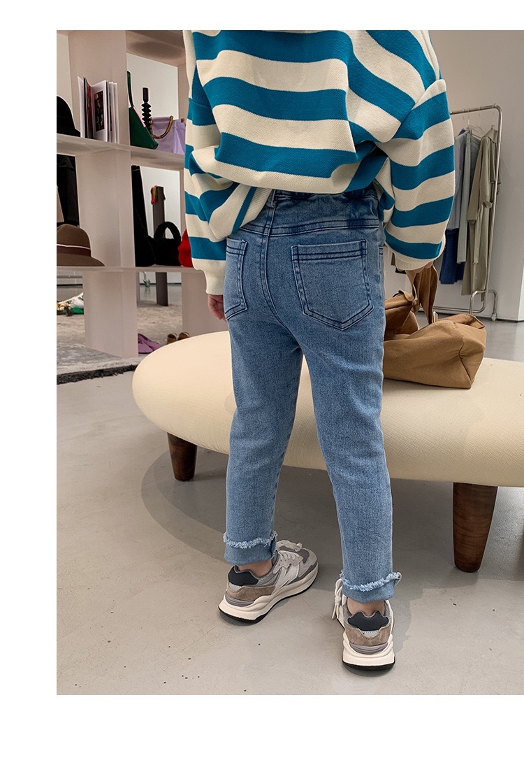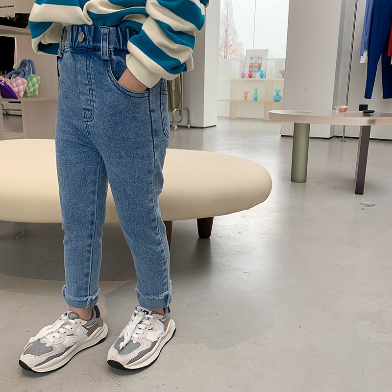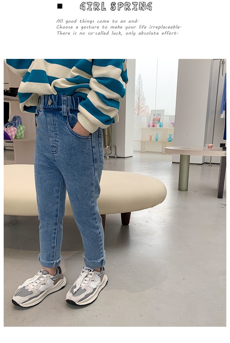 여아 슬림핏 고탄력 청바지 2025 봄 가을 스타일 여아 슬림핏 팬츠 중대형 아동용 패셔너블하고 트렌디한 긴바지스토어 가기