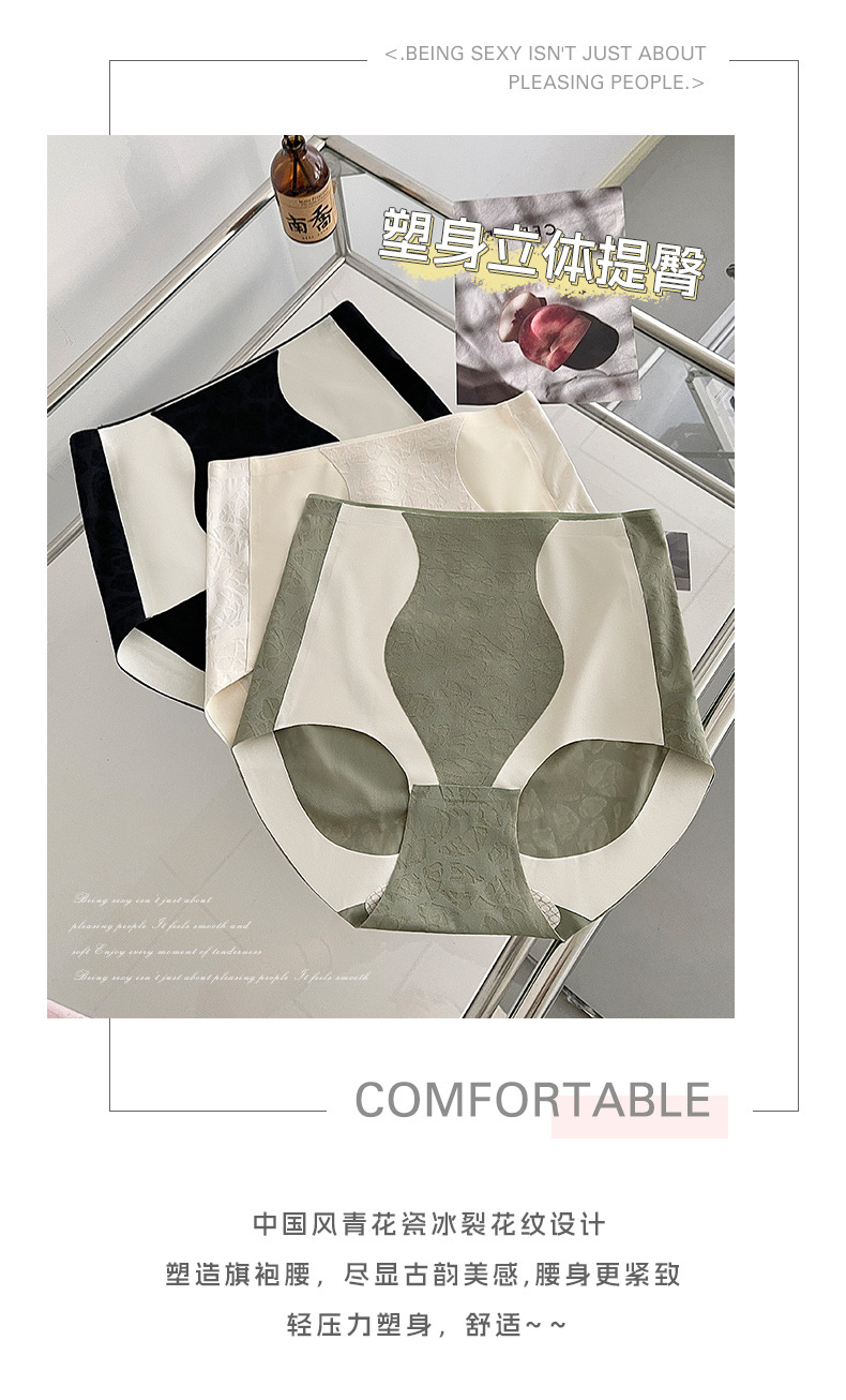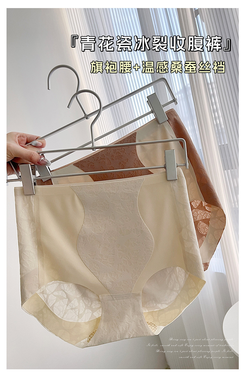 하이 웨이스트 배꼽 착색 섹시한 자카드 흔적없는 배꼽 꽉 허리 바디 쉐이핑 엉덩이 리프팅 뽕나무 실크 항균 가랑이 여성 속옷