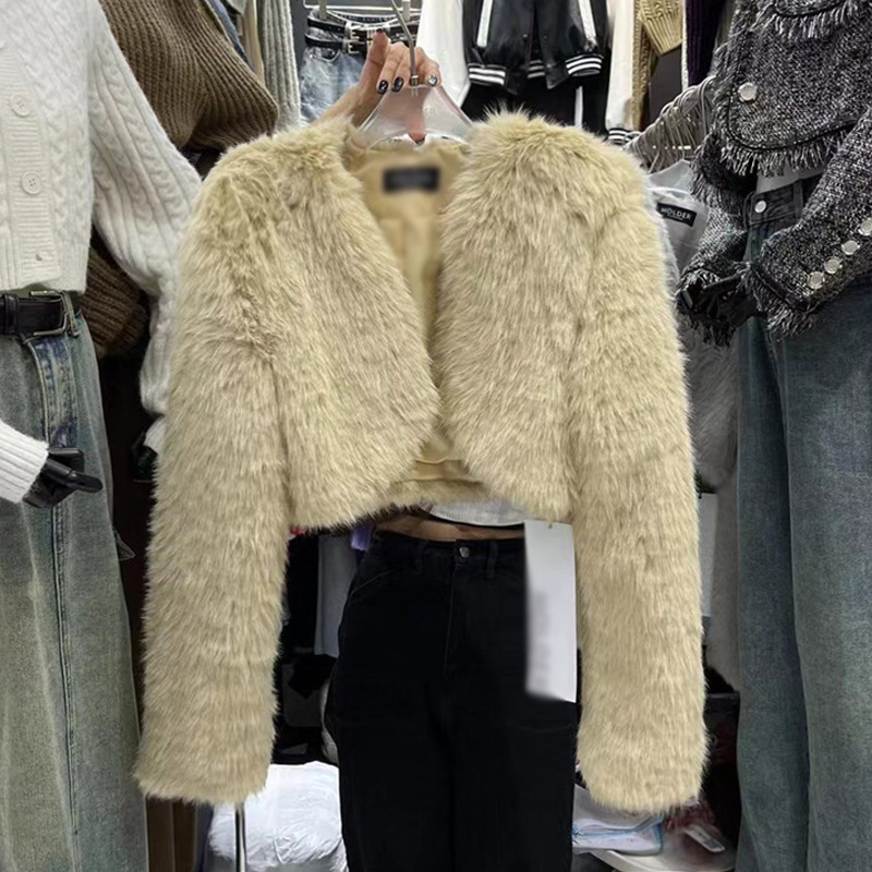 2023 동대문 가을/겨울 한국식 인조 모피 친환경 고급 센스 슬리밍 우아한 짧은 곡선 마오 재킷스토어 가기