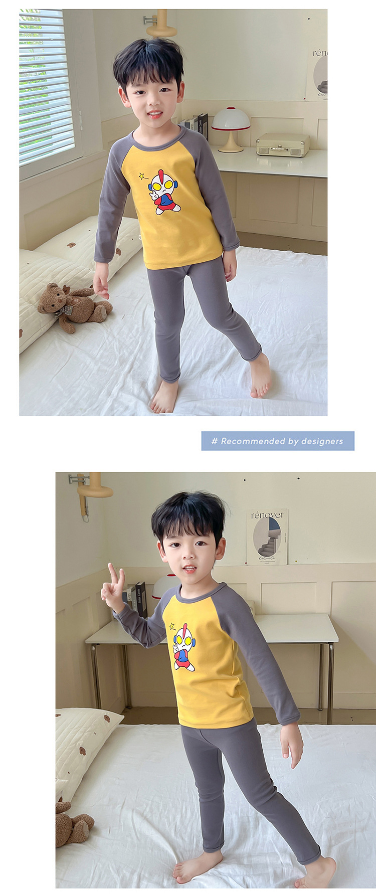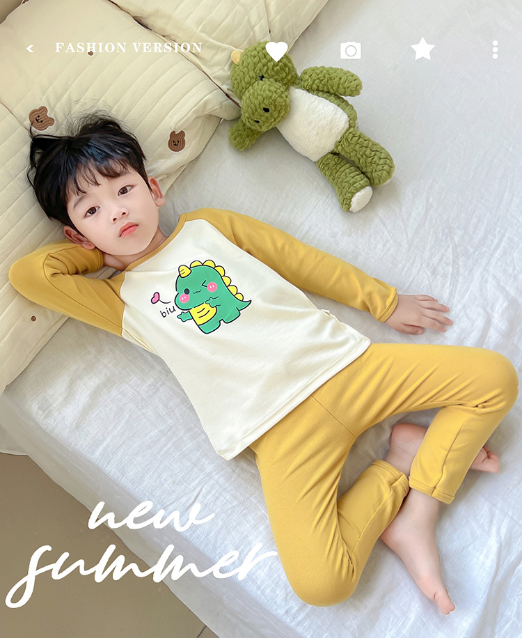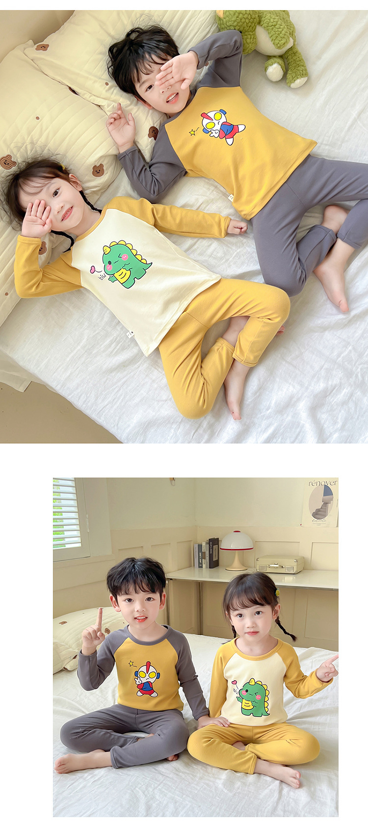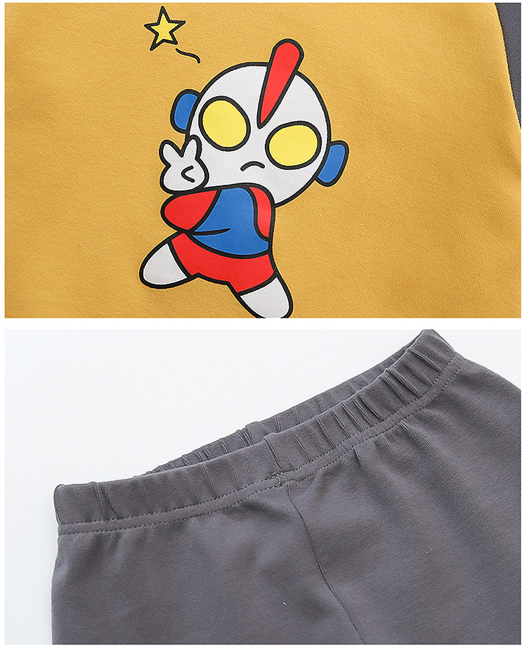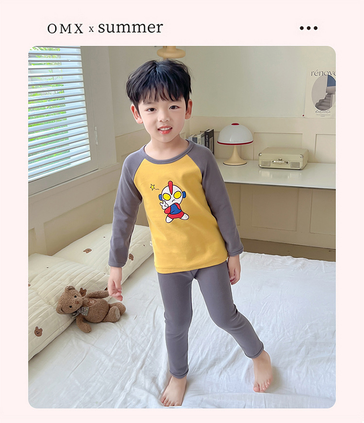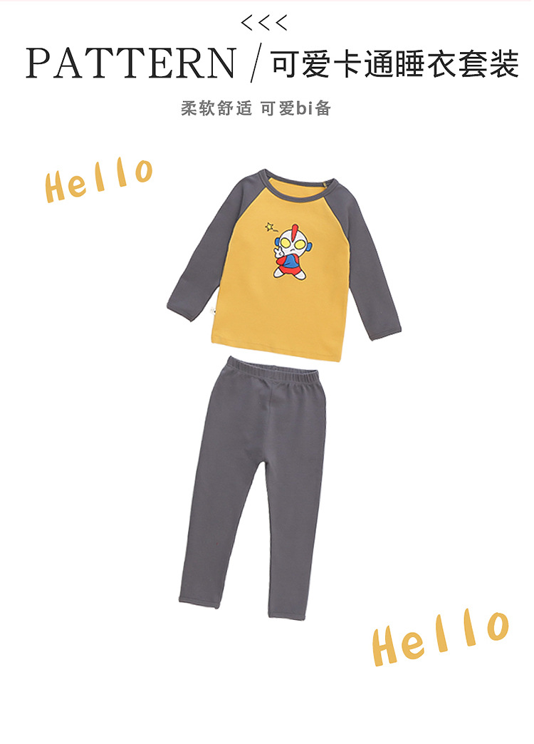 어린이 잠옷 세트 가을 한국 귀여운 아기 울트라 맨 긴팔 홈 착용 순면 형제와 자매 속옷 패션