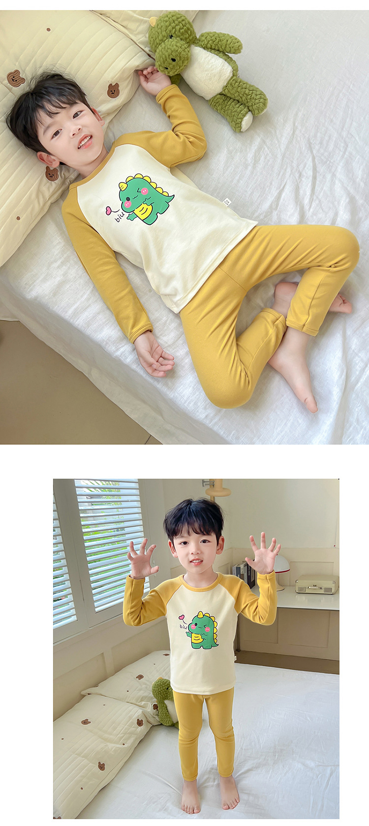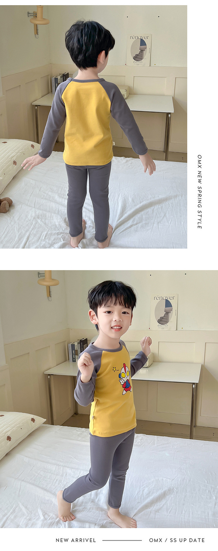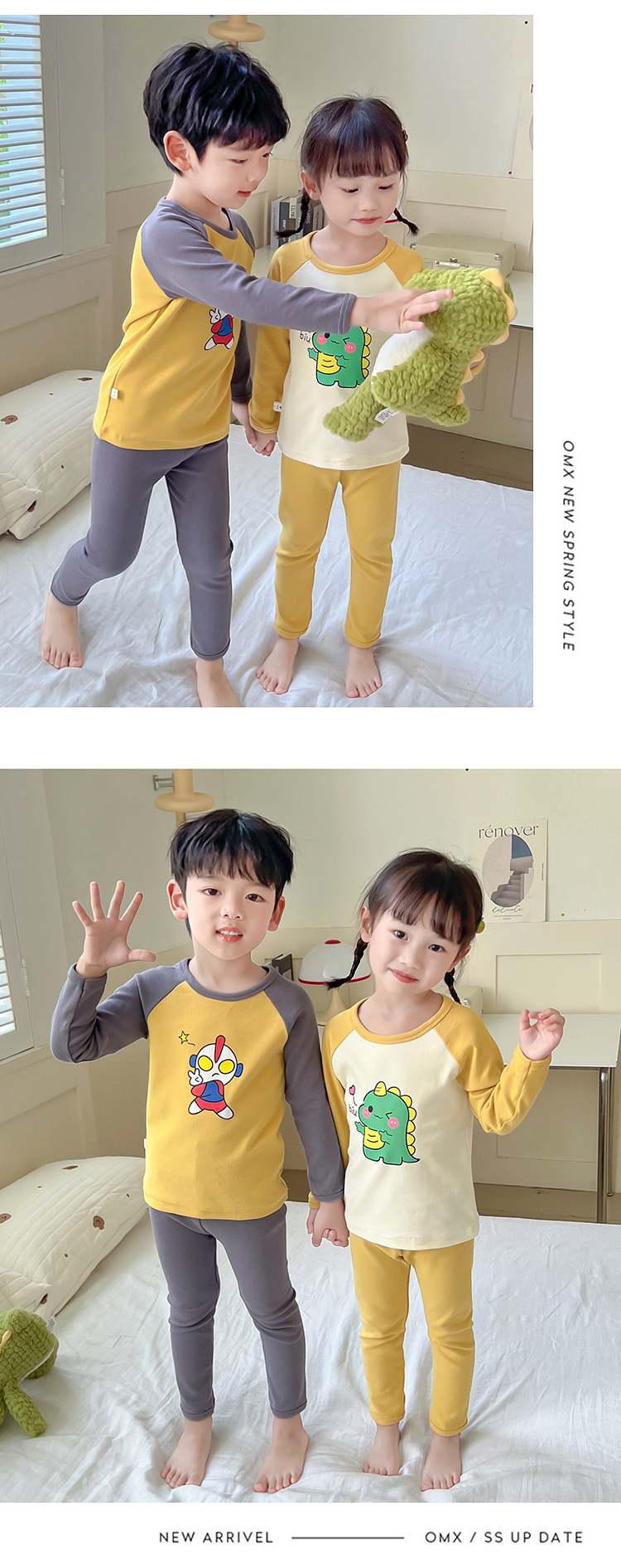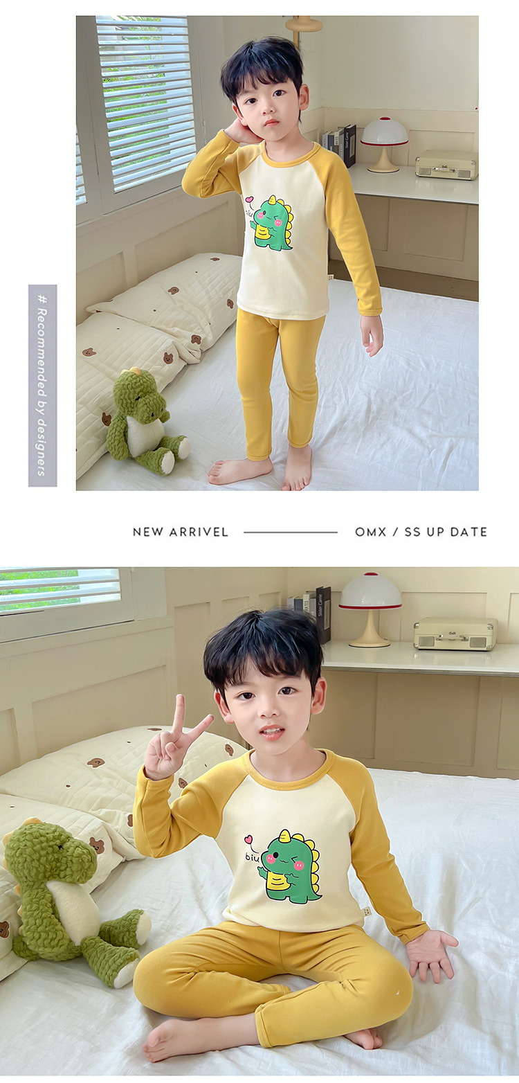 어린이 잠옷 세트 가을 한국 귀여운 아기 울트라 맨 긴팔 홈 착용 순면 형제와 자매 속옷 패션
