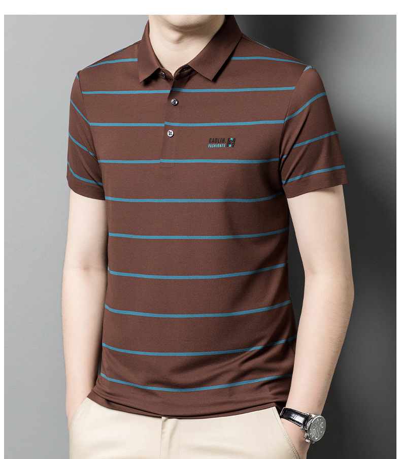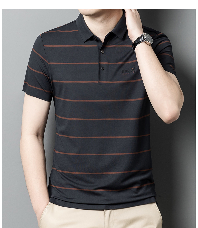심리스 티셔츠 원사 염색 심리스 트렌디 얇은 여름 남성 티셔츠 2023 여름 반팔 스트레이트 캐주얼 라펠
