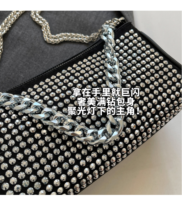 여름 대외 무역 가방 새로운 패션 라인 석 가방 모든 매치 체인 핸드백 세련된 풀 다이아몬드 크로스 바디 백스토어 가기