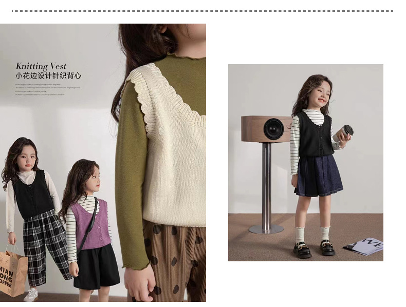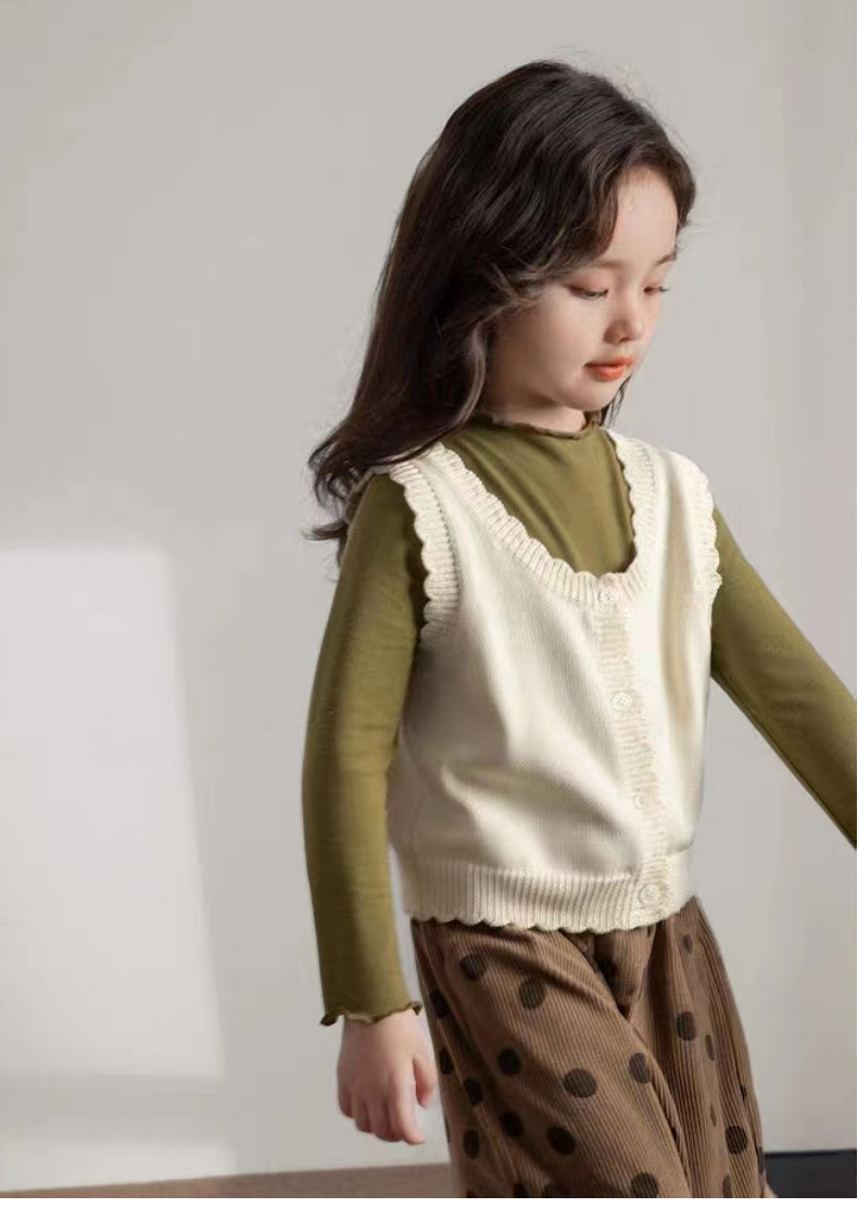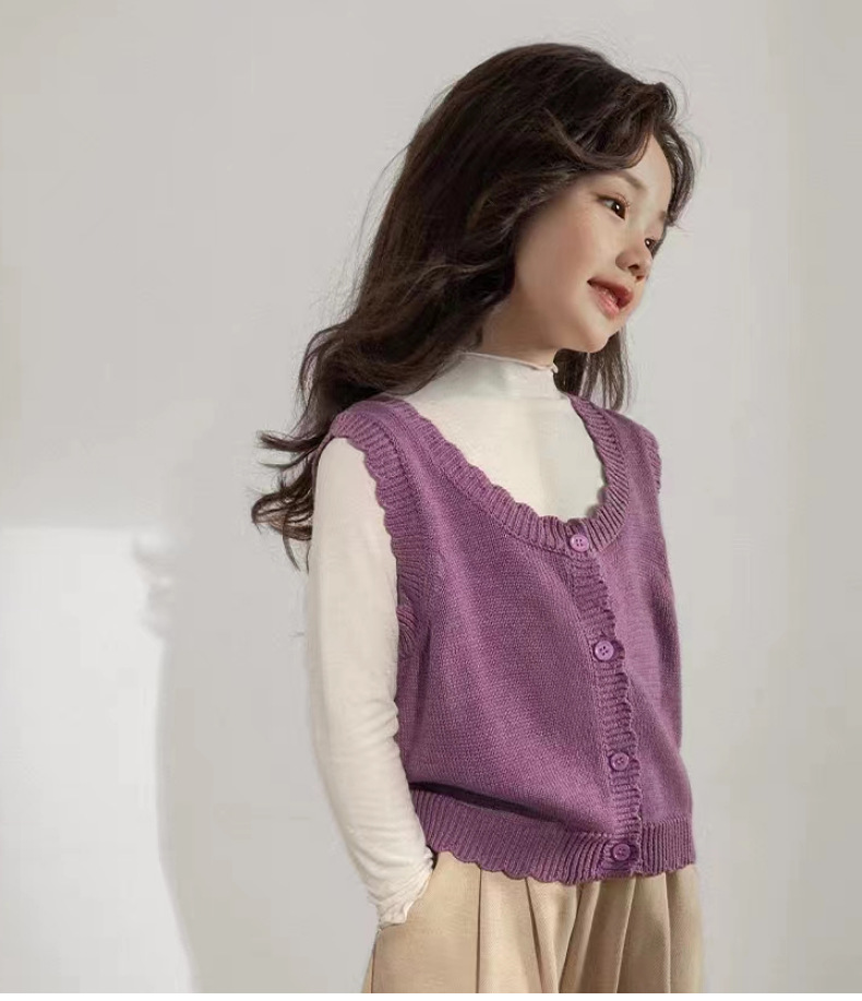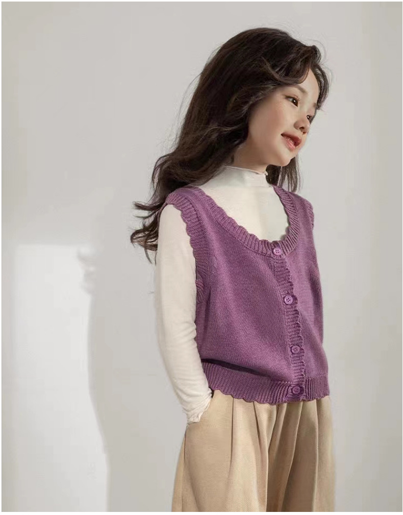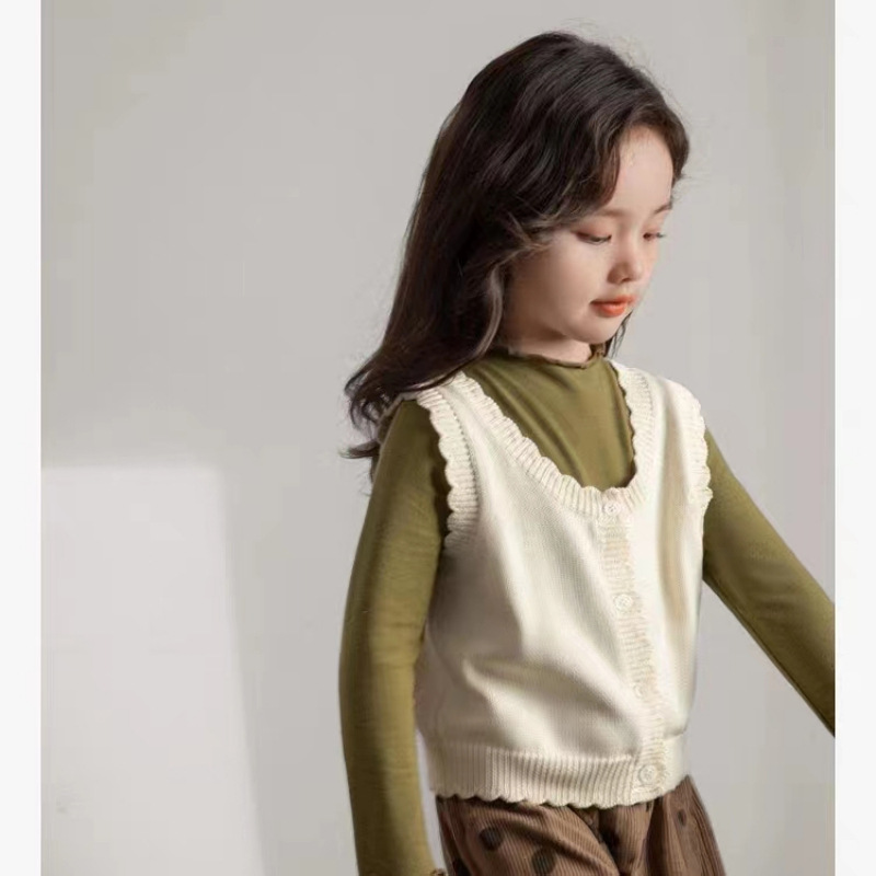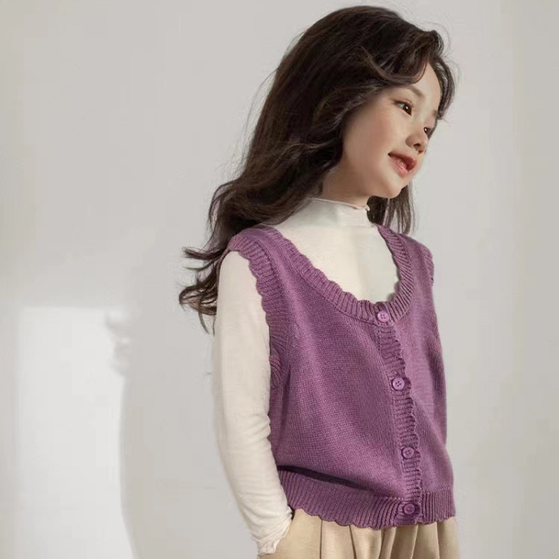 인터넷 연예인 스타일 캐주얼 한국 스타일 조끼, 라운드 넥 가디건, 아동복, 여아 친자복, 스웨터스토어 가기