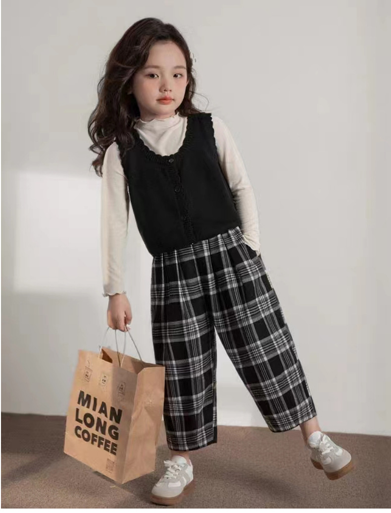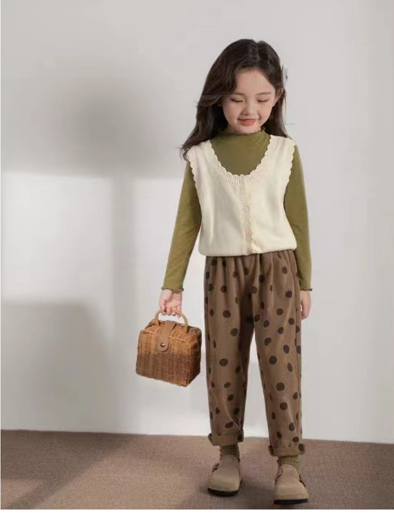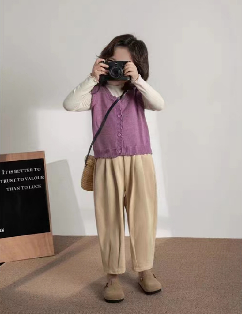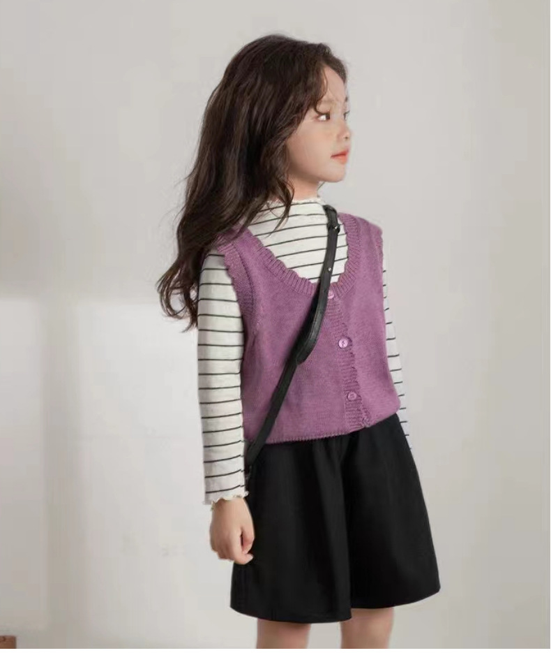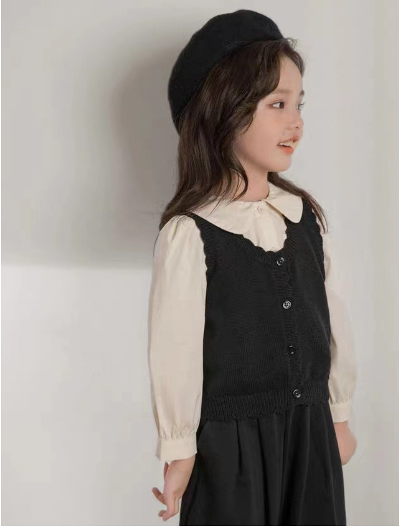 인터넷 연예인 스타일 캐주얼 한국 스타일 조끼, 라운드 넥 가디건, 아동복, 여아 친자복, 스웨터스토어 가기