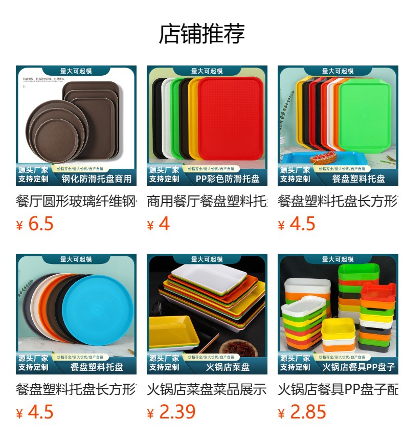 상업용 레스토랑 디너 플레이트 플라스틱 직사각형 케이터링 서빙 두꺼운 플레이트 미끄럼 방지 KFC 패스트 푸드 대형 트레이스토어 가기