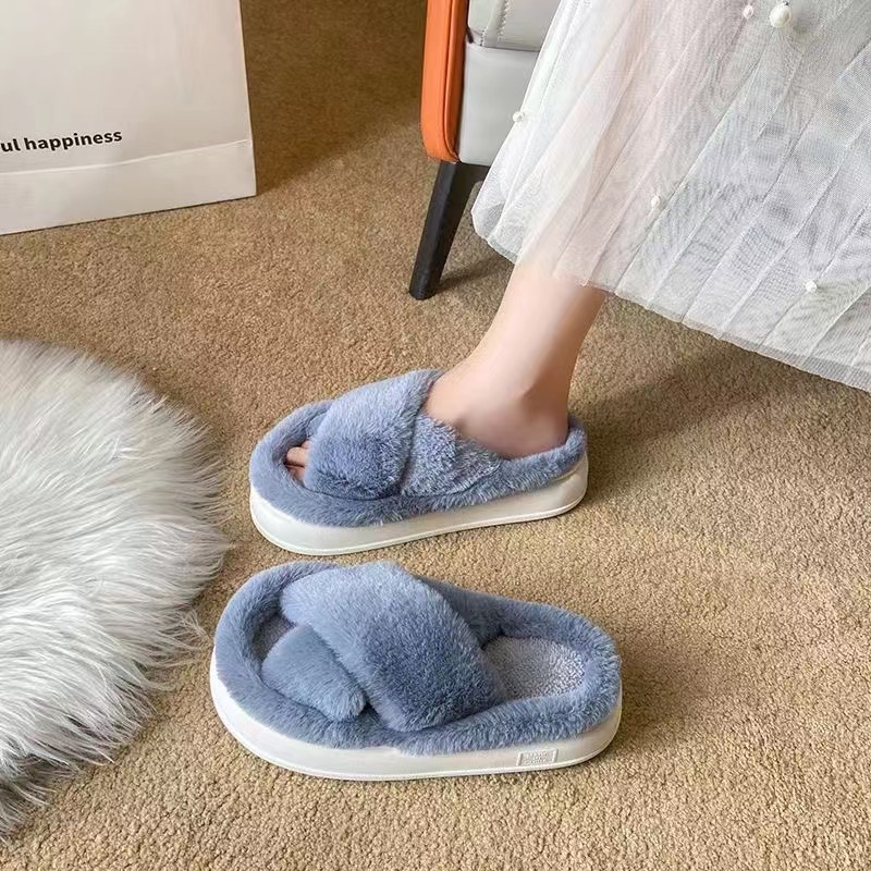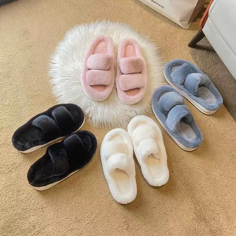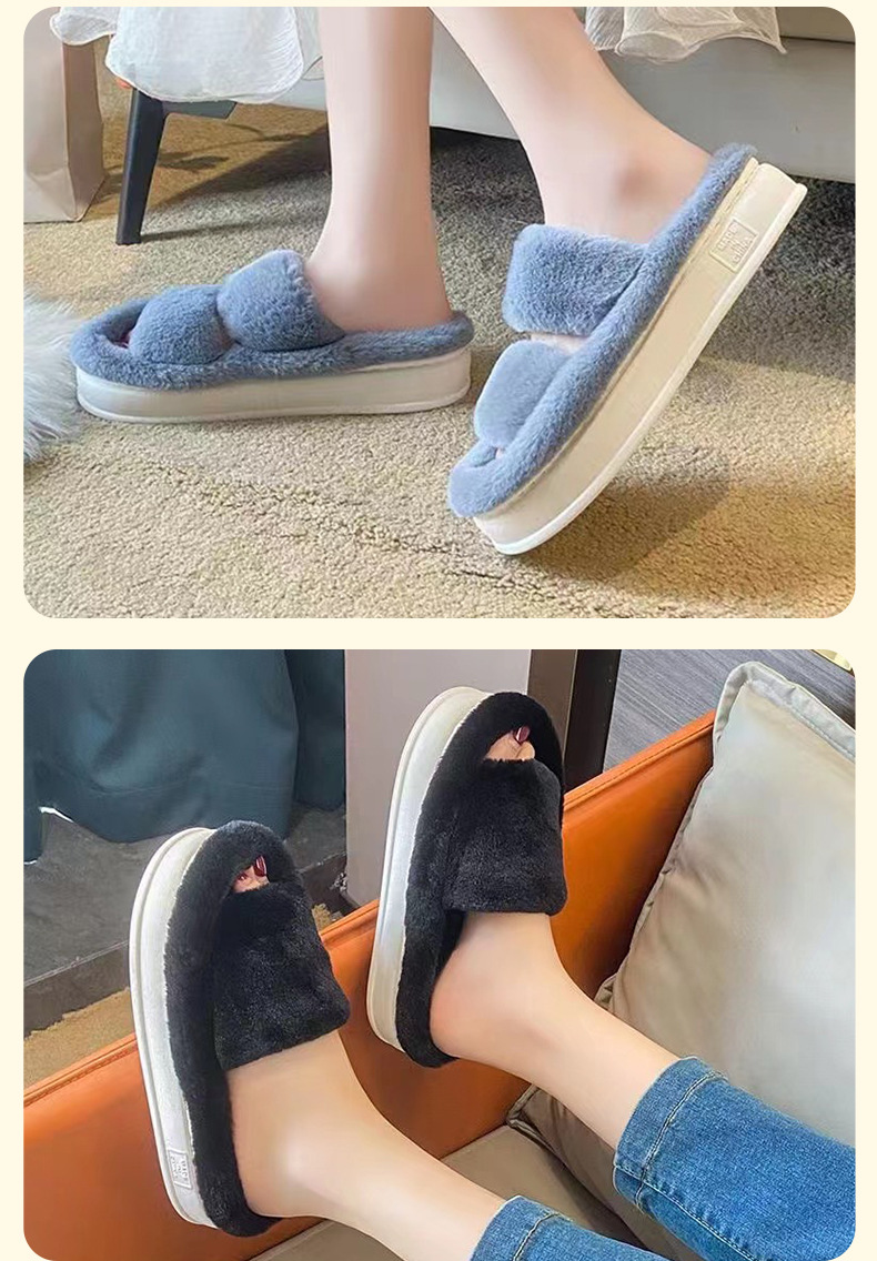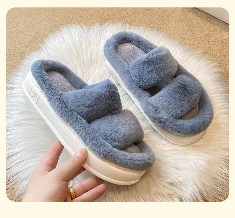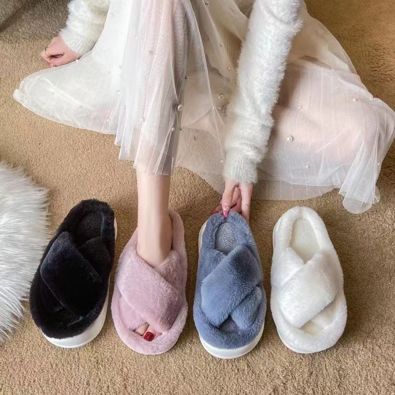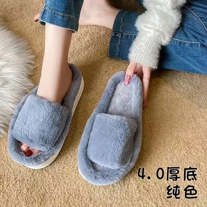 국경 간 새로운 모조 토끼 헤어 슬리퍼 여성의 집 따뜻한 4 잎 클로버 마오 마오 플랫 대외 무역을위한 오픈 코튼 슬리퍼스토어 가기