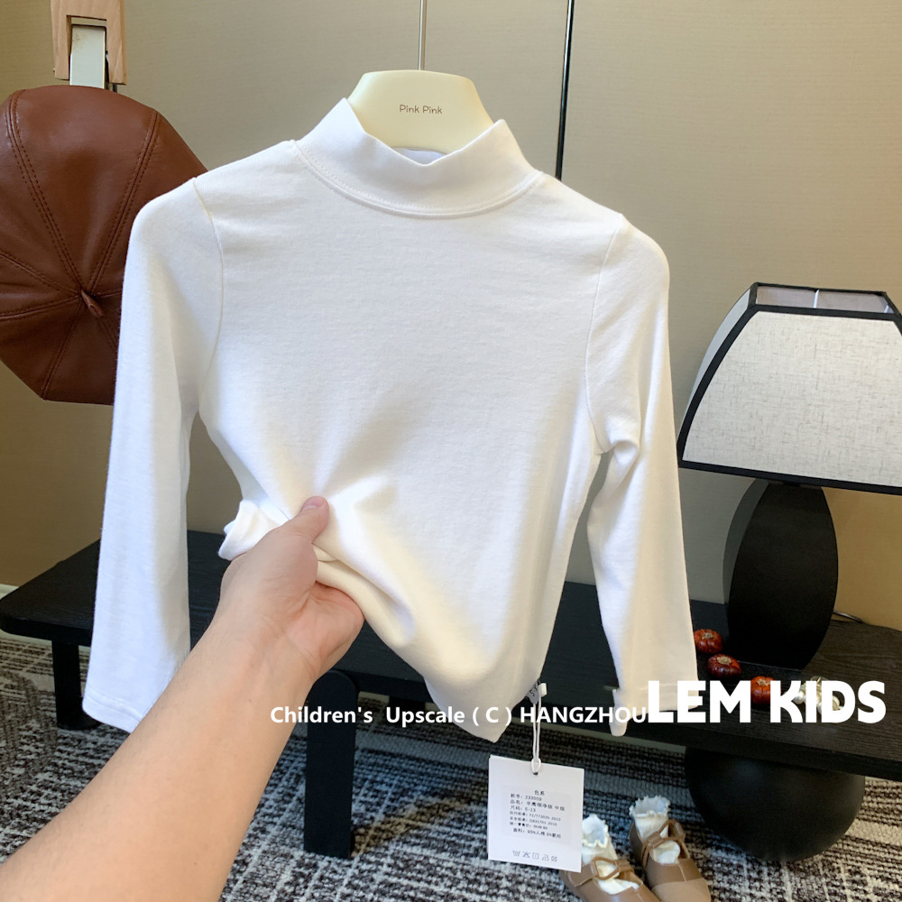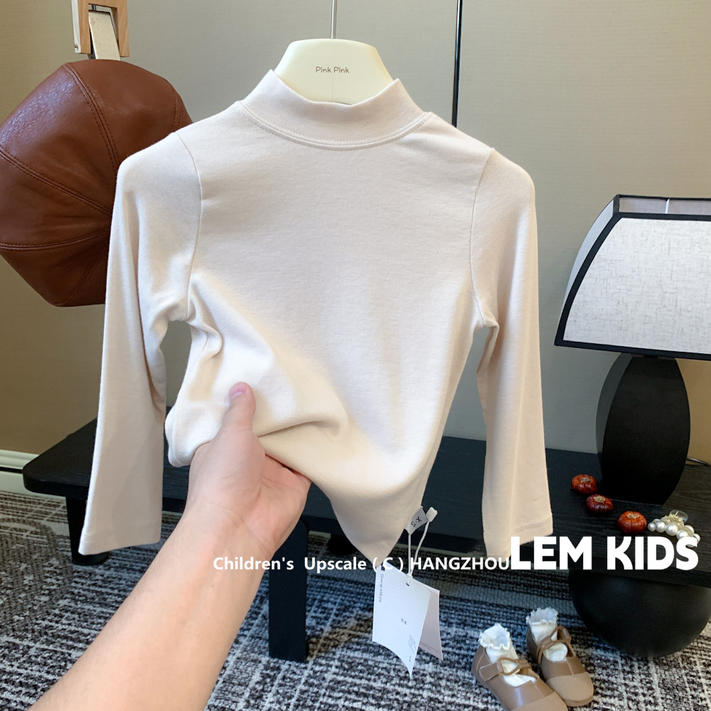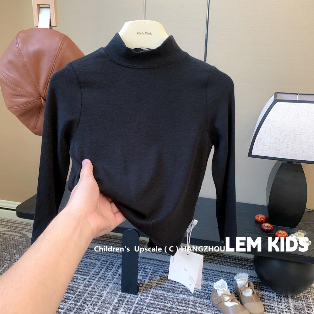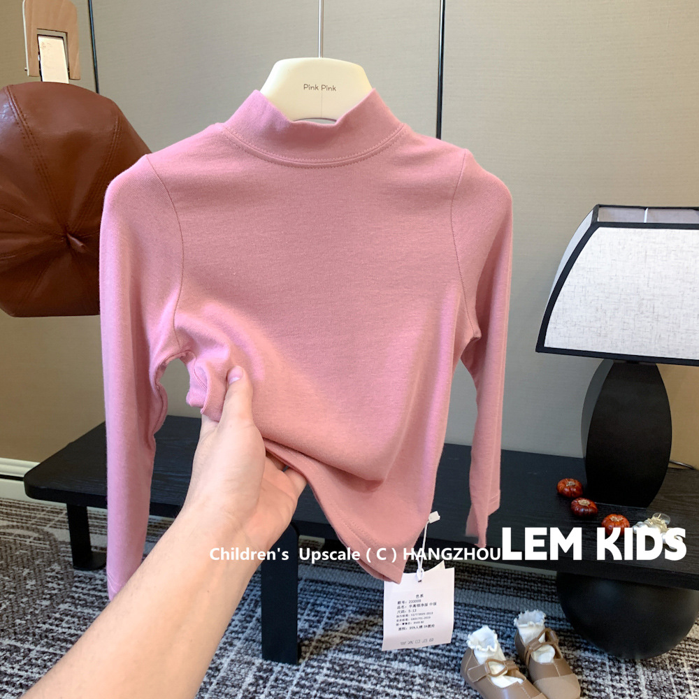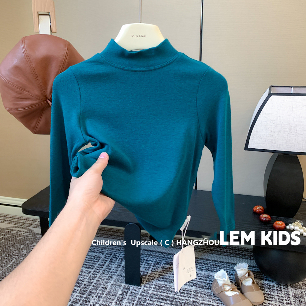 라임 인터넷 인기 어린이 캐시미어 세미 하이 칼라베이스 셔츠 가을과 겨울 새로운 스타일 소년과 소녀를위한 내부 높은 탄성 긴 소매 서양 스타일 티셔츠스토어 가기