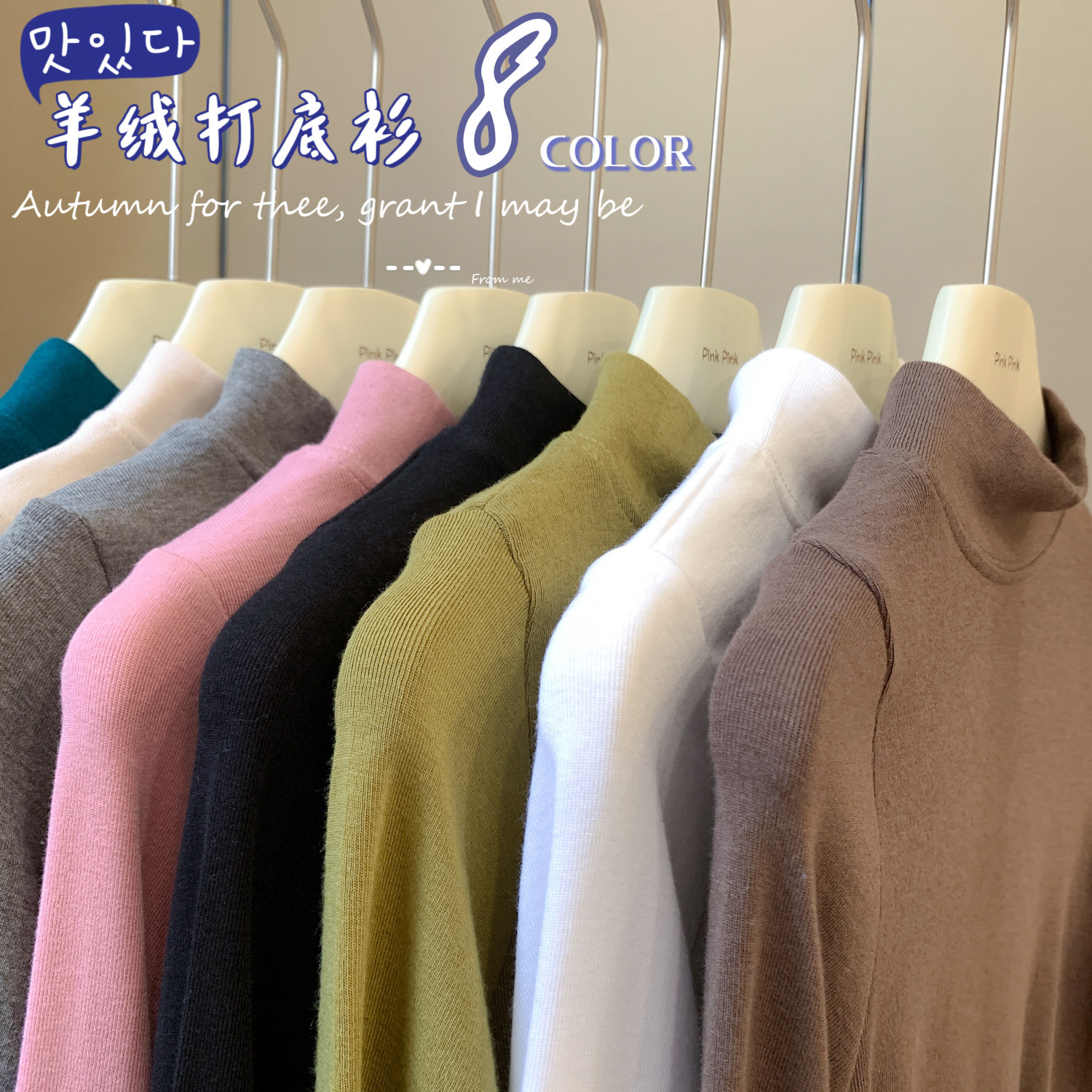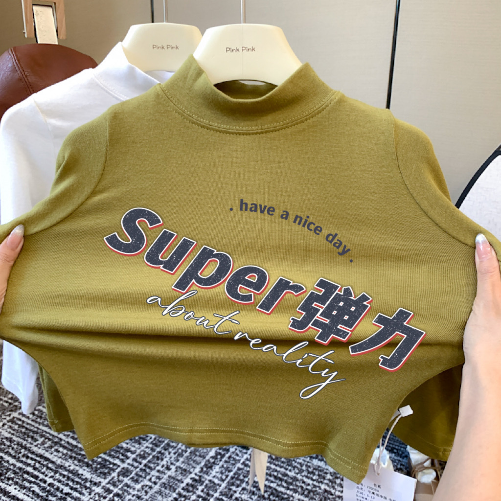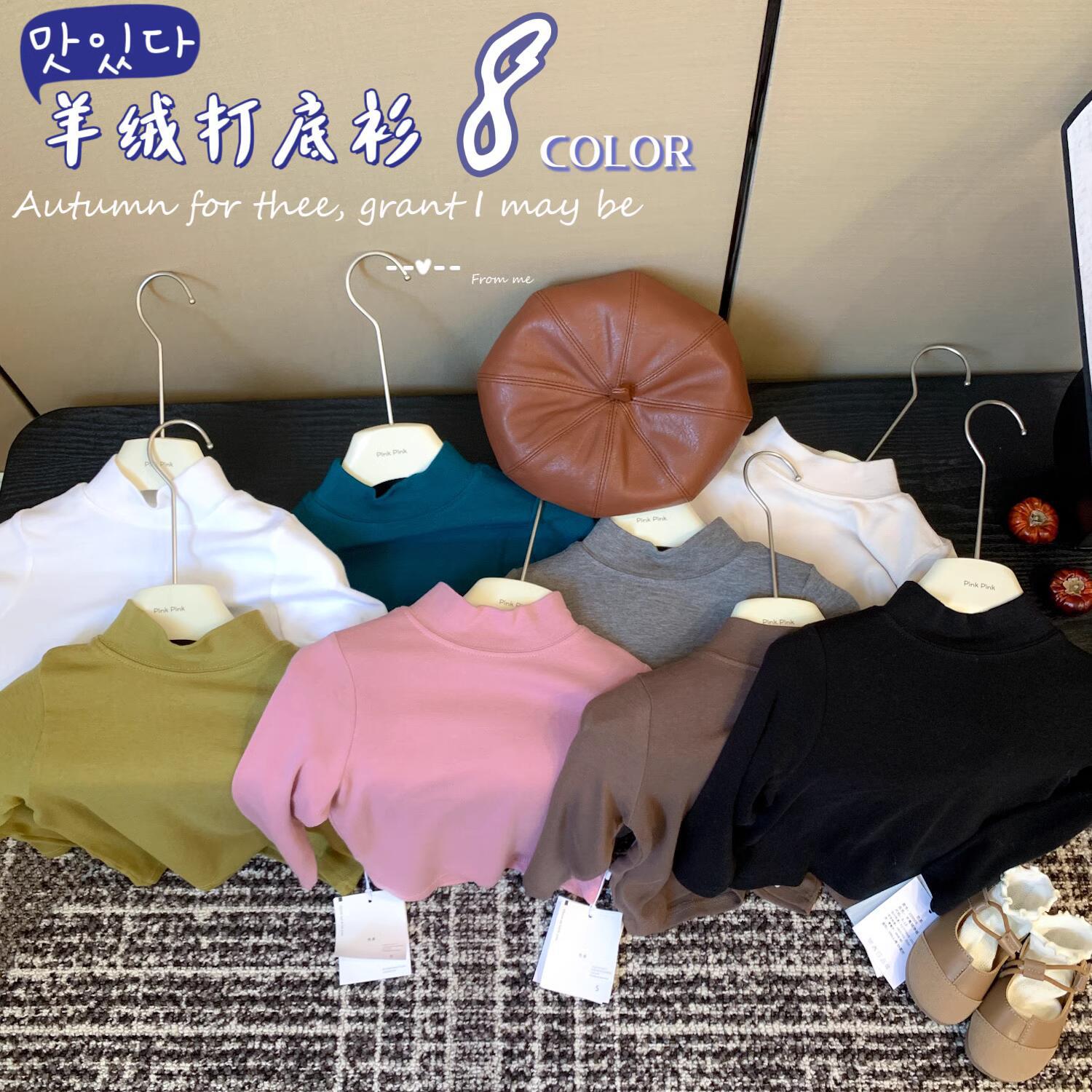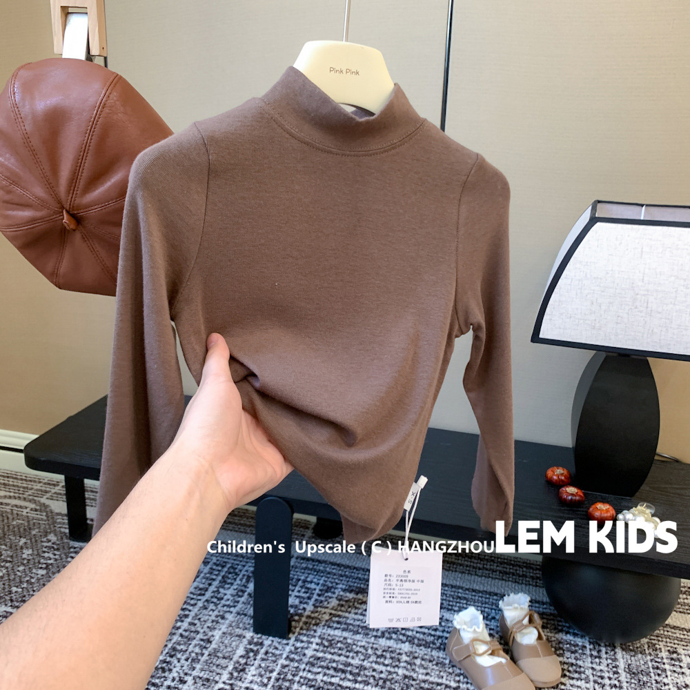 라임 인터넷 인기 어린이 캐시미어 세미 하이 칼라베이스 셔츠 가을과 겨울 새로운 스타일 소년과 소녀를위한 내부 높은 탄성 긴 소매 서양 스타일 티셔츠스토어 가기