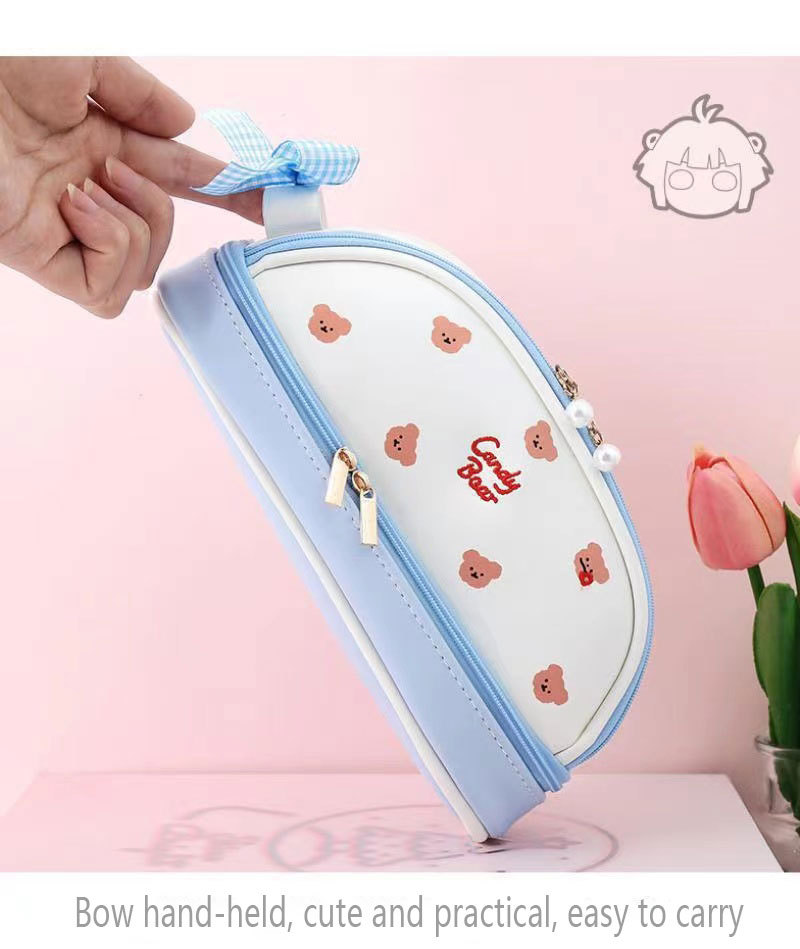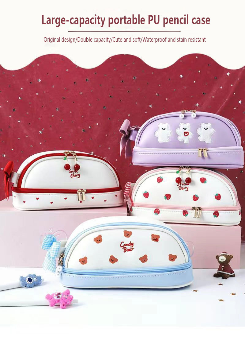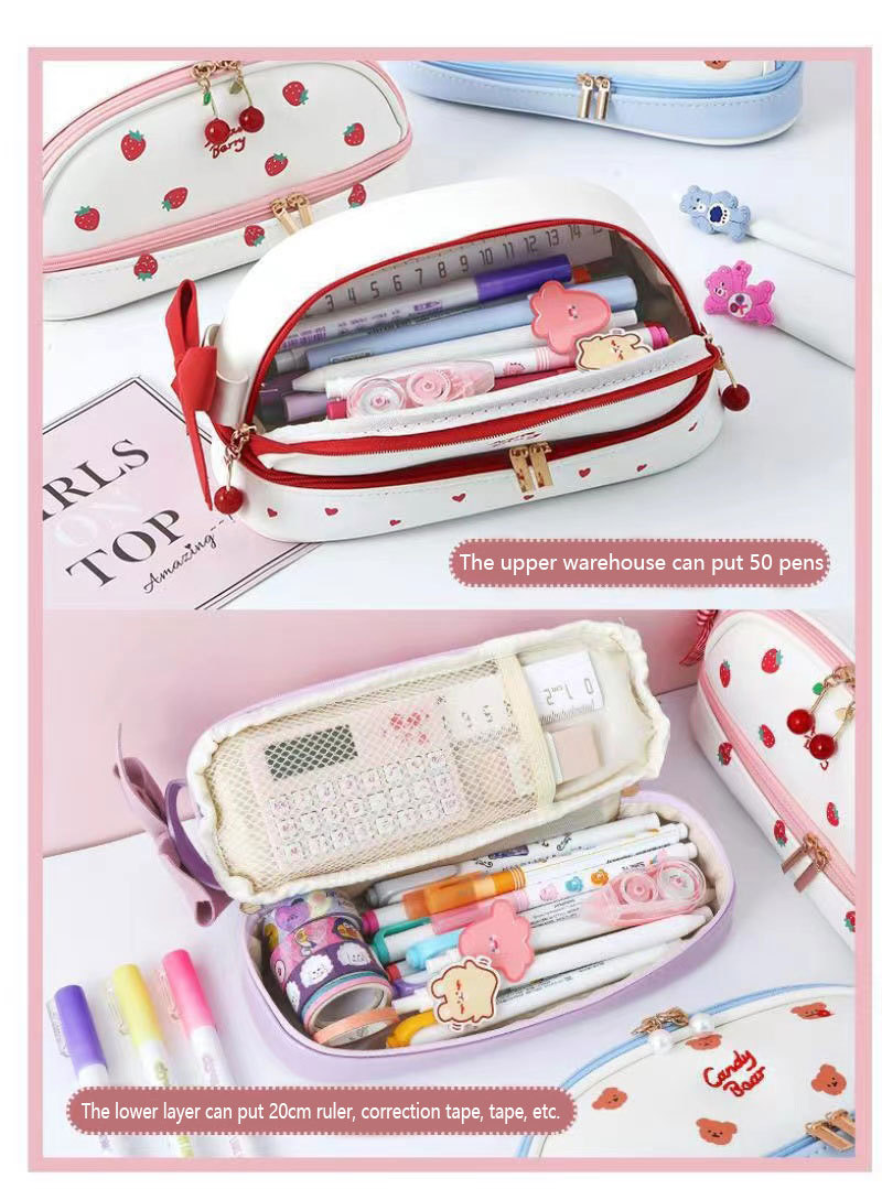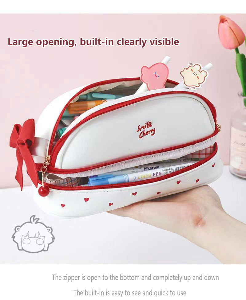 귀여운 소녀의 심장 새로운 대용량 더블 레이어 연필 가방 스타일 초등 및 중등 학교 학생을위한 간단한 고가의 스토리지 연필 가방
