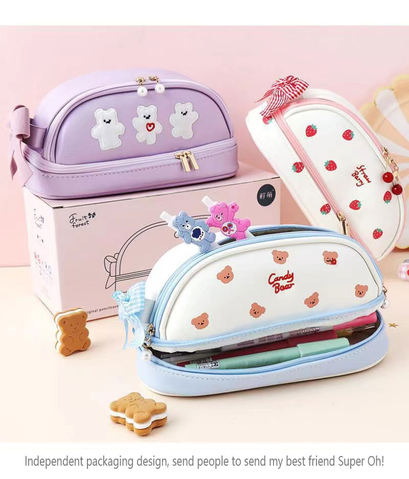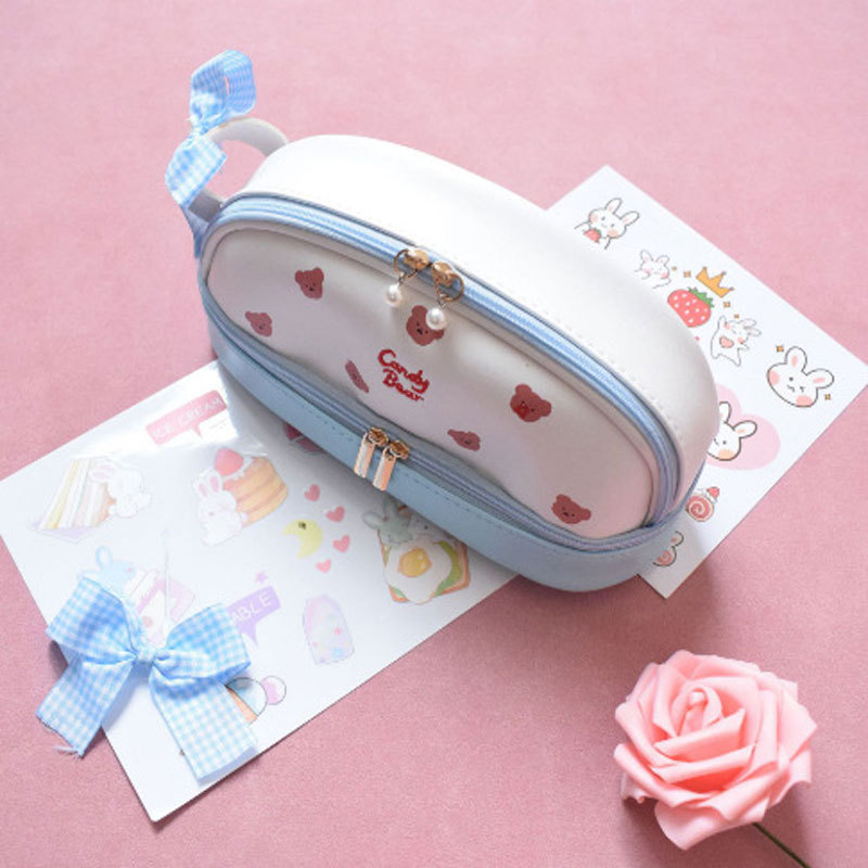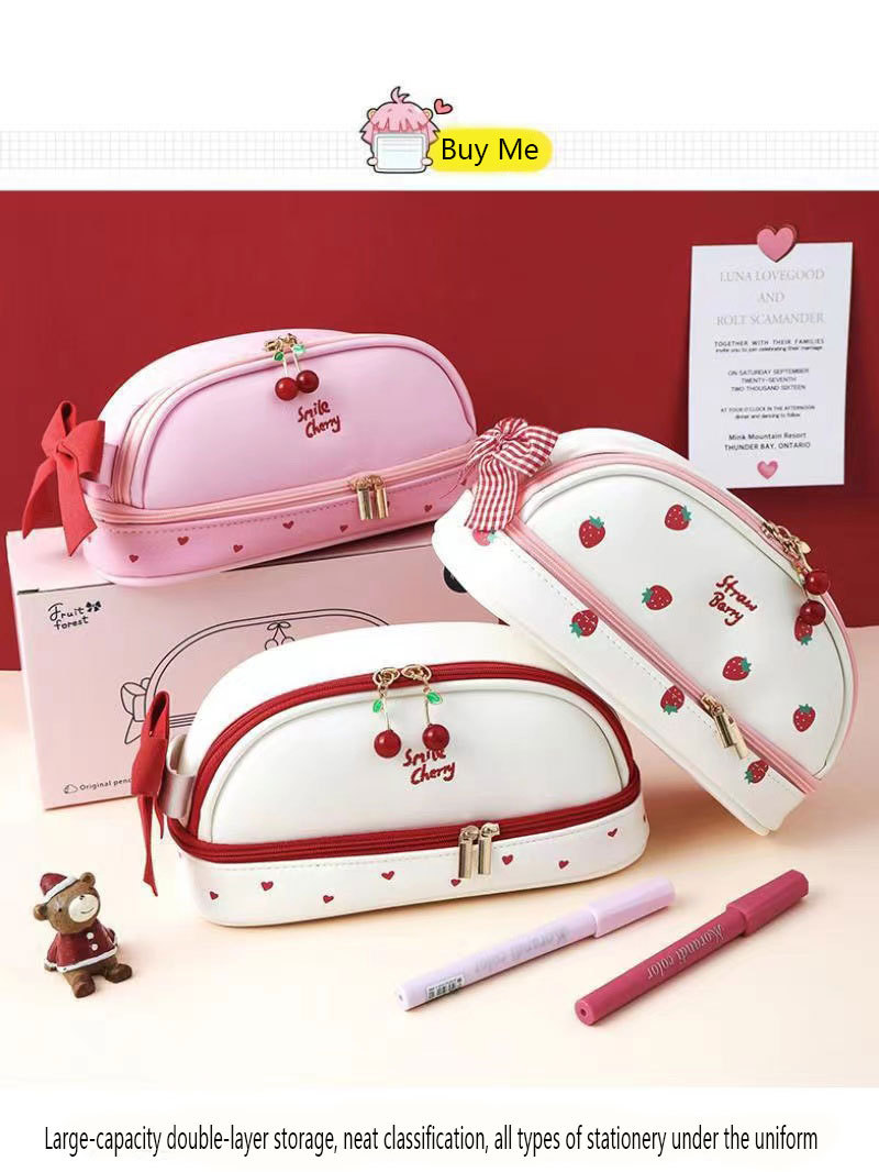 귀여운 소녀의 심장 새로운 대용량 더블 레이어 연필 가방 스타일 초등 및 중등 학교 학생을위한 간단한 고가의 스토리지 연필 가방스토어 가기