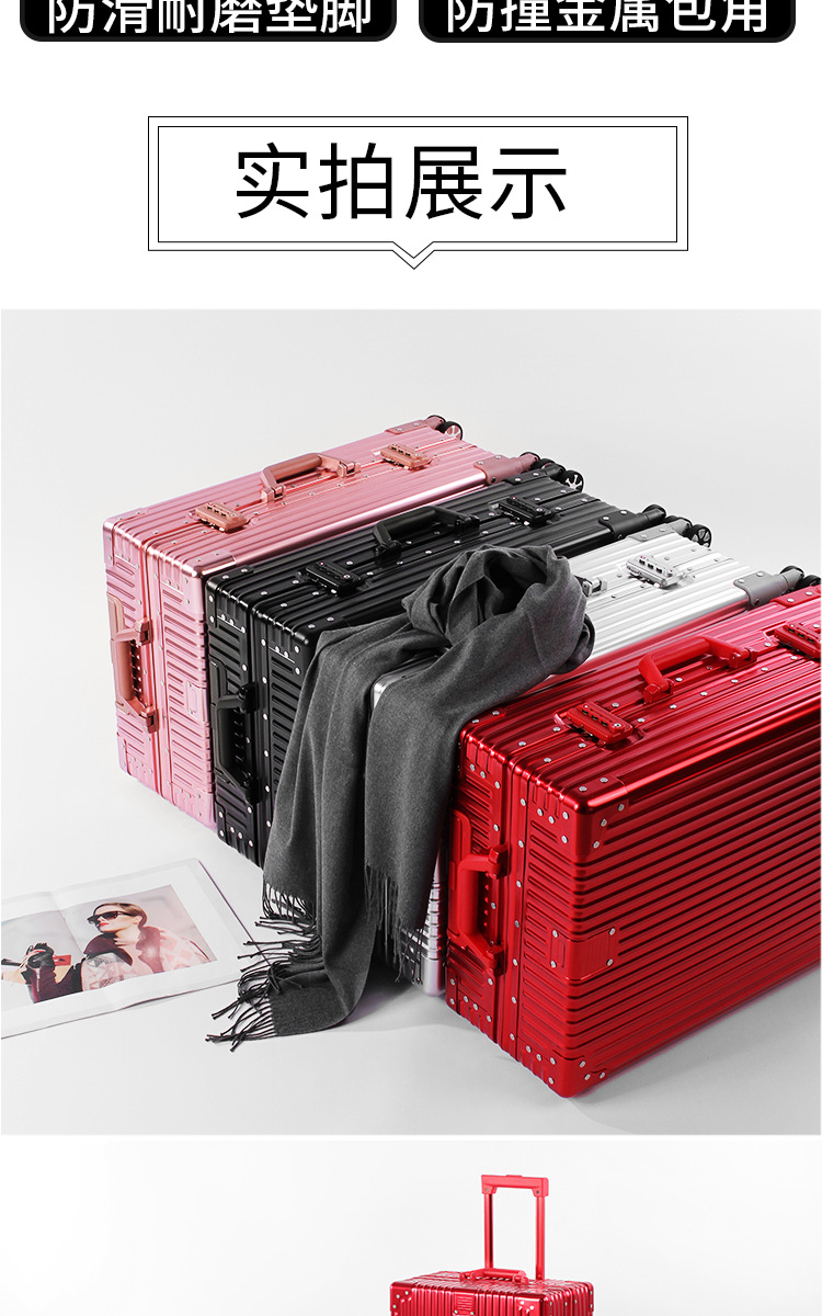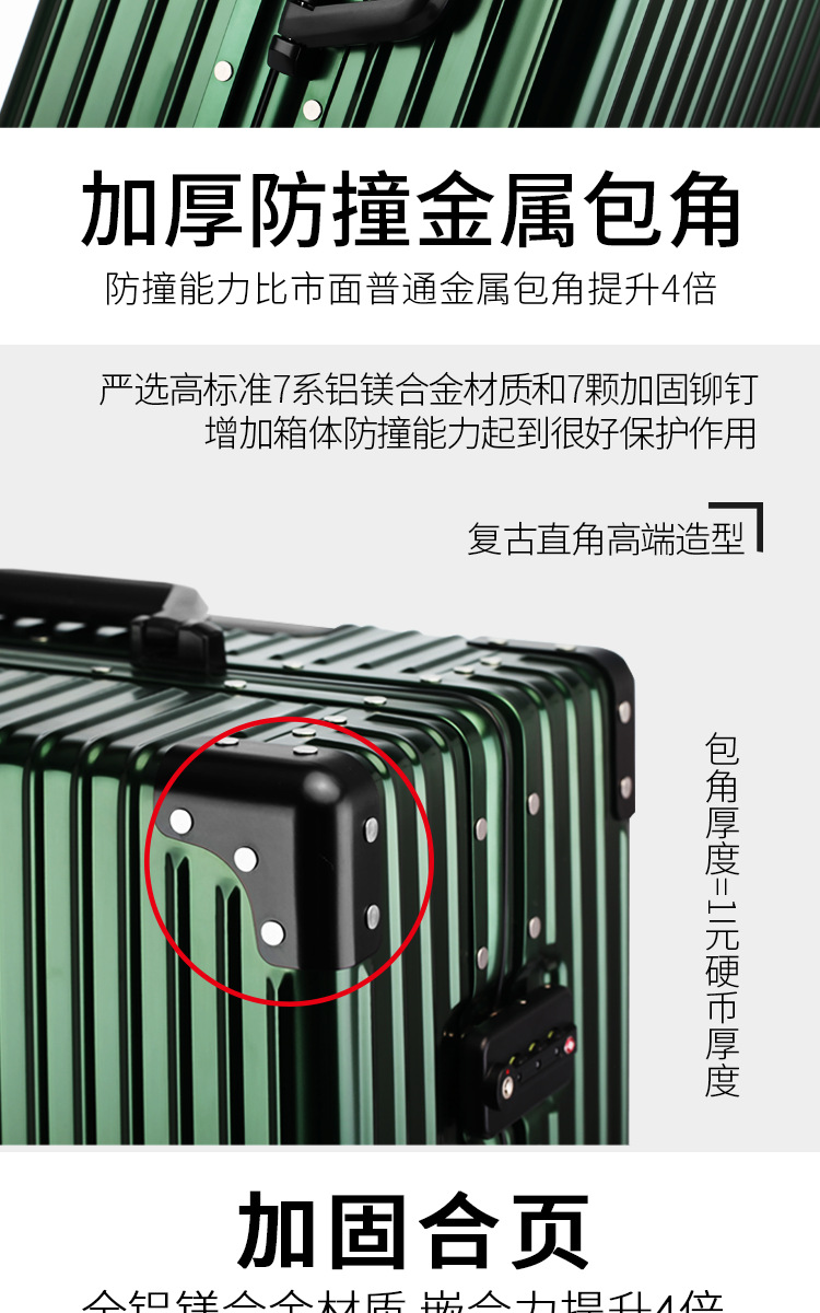 Amazon 베스트셀러 전체 알루미늄 마그네슘 합금 트롤리 케이스 범용 휠 가방 남성용 20inch 비밀번호 탑승 케이스 하드 케이스스토어 가기