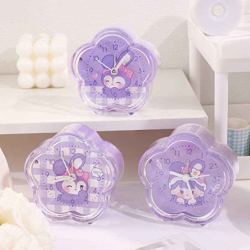 • 57897-보라색 별 토끼 작은 우유 푸 투명 꽃 알람 시계