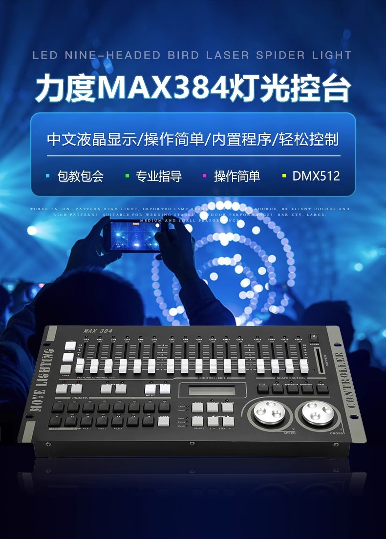 패튼 강도 MAX384 조명 제어 스테이션 dmx512 제어 스테이션 성능 파이 램프 빔 램프 무대 조명 컨트롤러스토어 가기